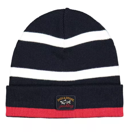 Шерстяная шапка-бини в полоску из 100% мериносовой шерсти, с фирменным логотипом