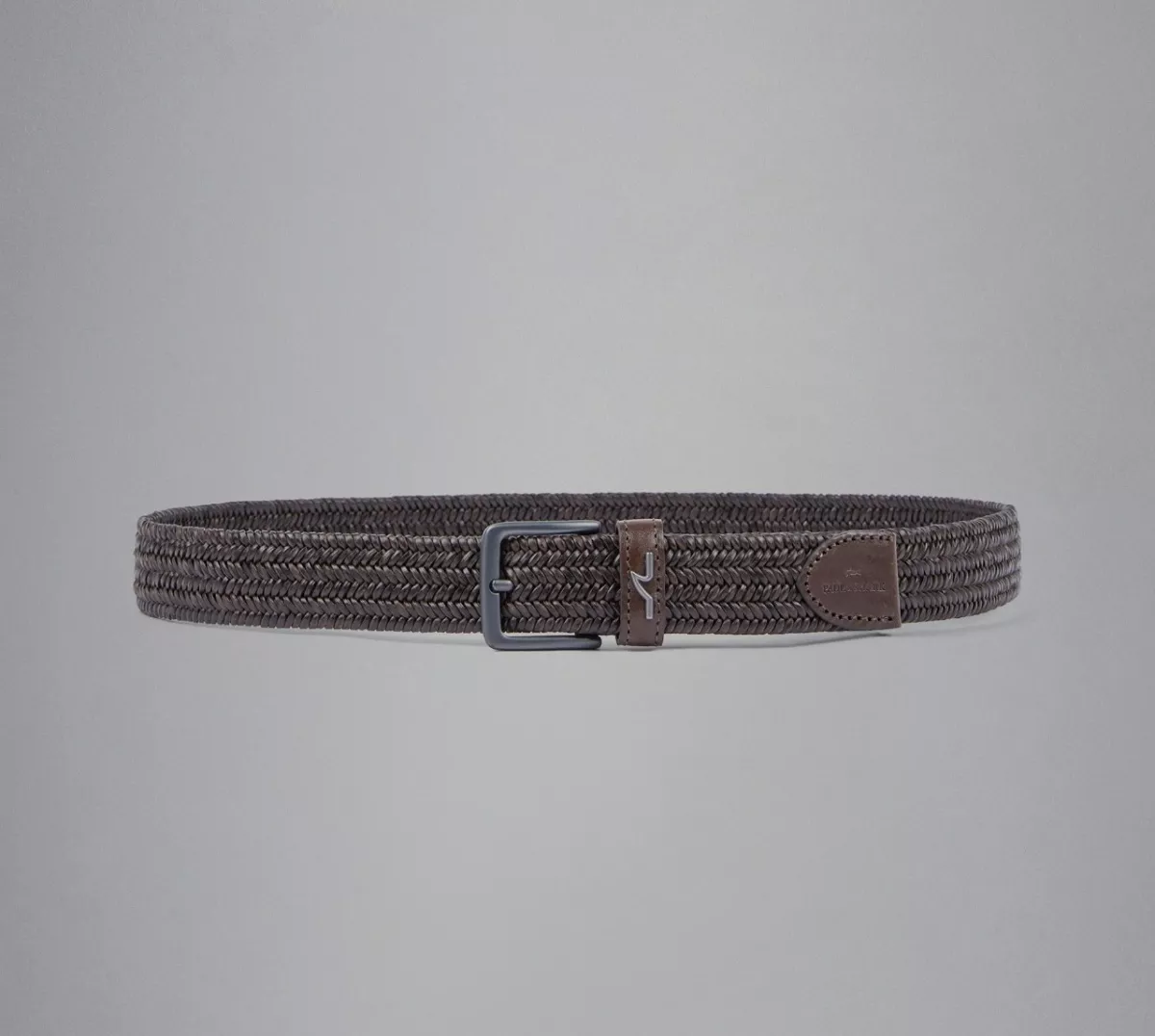 Этот пояс является классикой повседневного гардероба. Аксессуар выполнен из плетёной кожи со сложными оттенками и металлическим элементом на петле. Закрывается металлической пряжкой квадратной формы