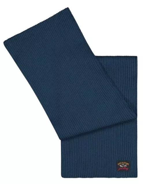 Шарф изготовлен из шерсти, вязка широкий рубчик. Логотип Paul&Shark Heritage