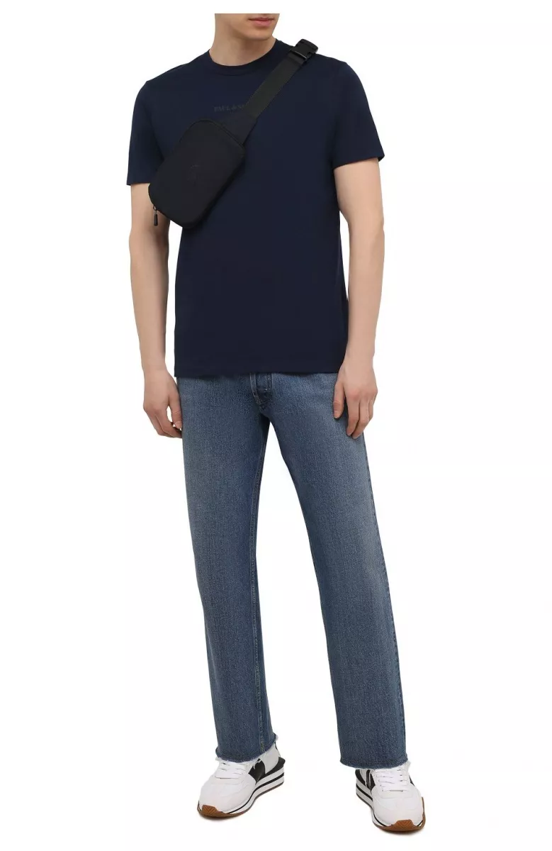 Сумку благодаря широкому регулируемому ремню можно носить как на поясе, так и через плечо. Модель с логотипом бренда выполнена из прочного текстиля, который не боится влаги и легко очищается от загрязнений. Внутрь поместятся смартфон, ключи и кошелек.