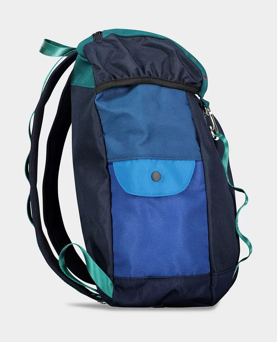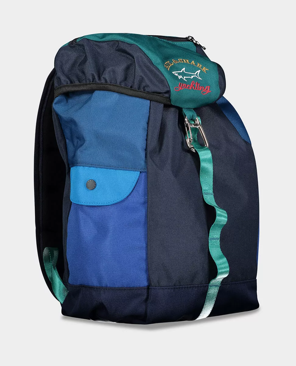 Рюкзак в стиле колор-блок с вышитым логотипом на застежке-карабине. Боковые карманы на пуговицах. Многофункциональные внутренние карманы. Для города, прогулок, поездок и походов