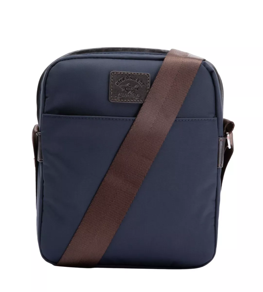 Текстильная сумка с кожаными элементами. Мягкая прямоугольная форма, регулируемый плечевой ремень, основное отделение и карман на молнии, нашивка с логотипом бренда спереди и внутри