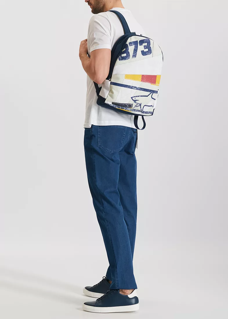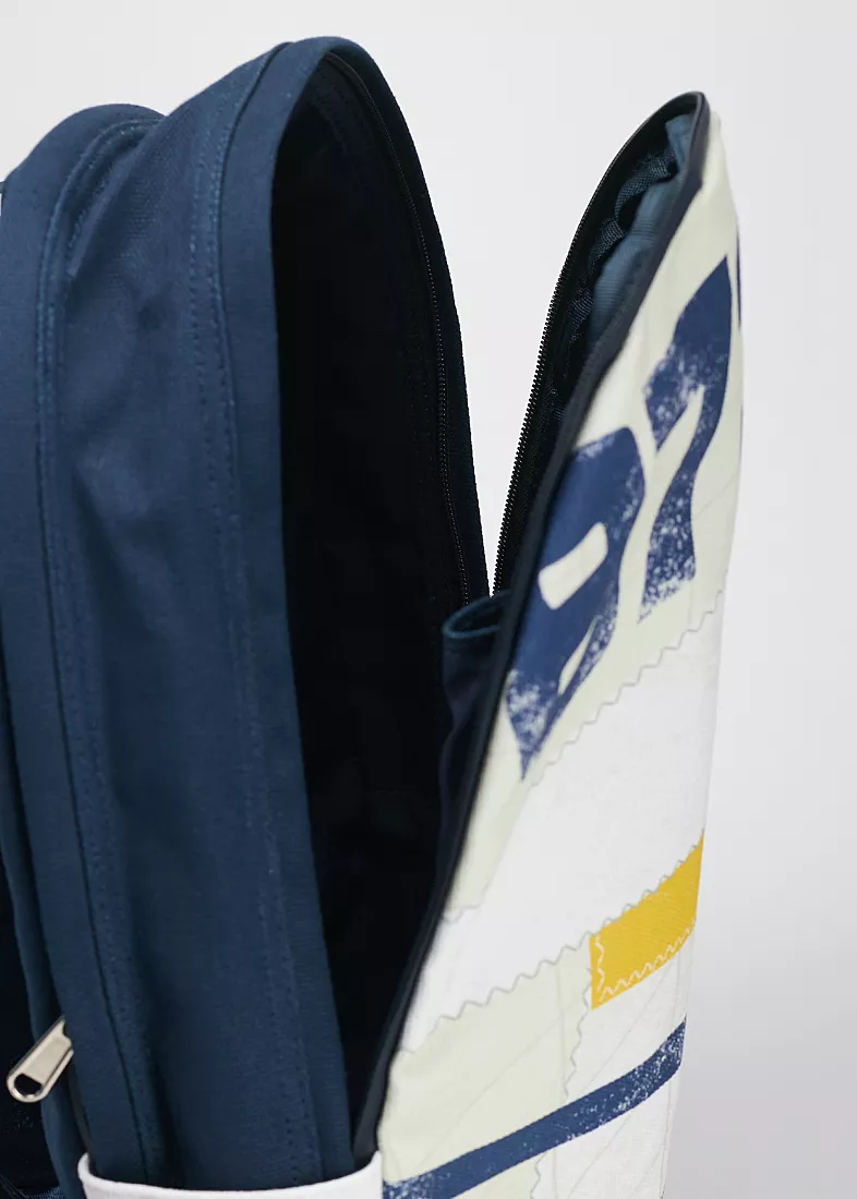 Лёгкий текстильный рюкзак. Два открытых кармана и два отделения на молнии