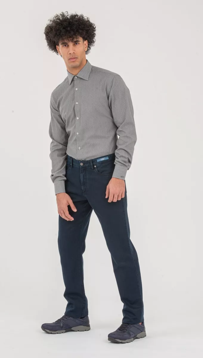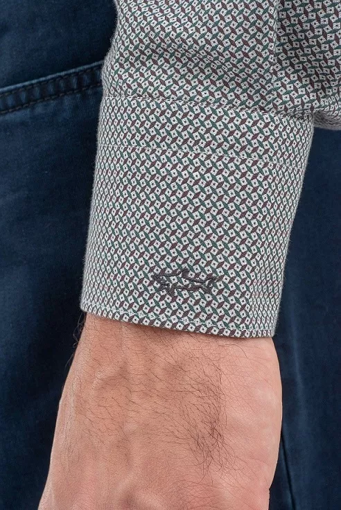 Хлопковая рубашка с принтом, французским воротником. Вышитый логотип бренда на левой манжете