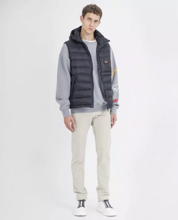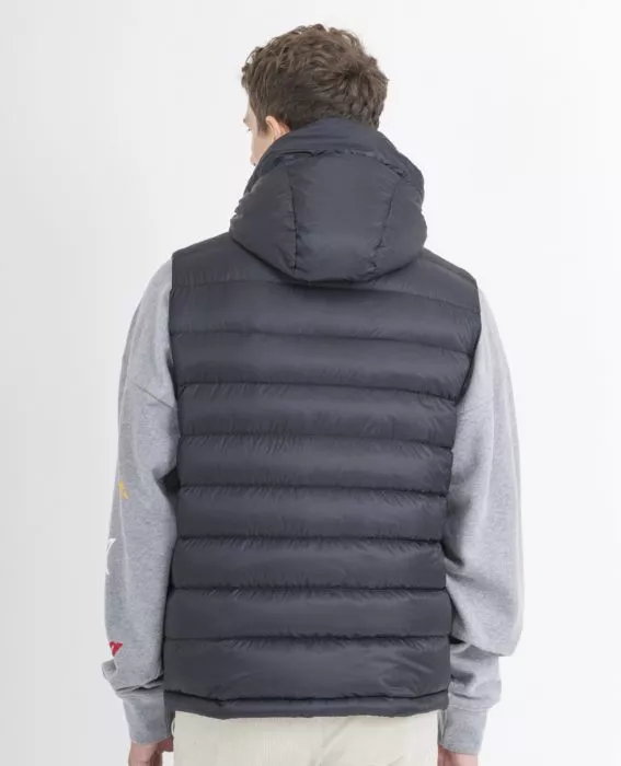 Жилет «7x1000» из нейлона Ripstop с пухом 1000 FP. Жилет стандартного покроя с капюшоном и кулиской, двусторонней застежкой-молнией. Карманы на молнии, многофункциональные внутренние карманы + карман для телефона. Декорирован светоотражающим принтом.