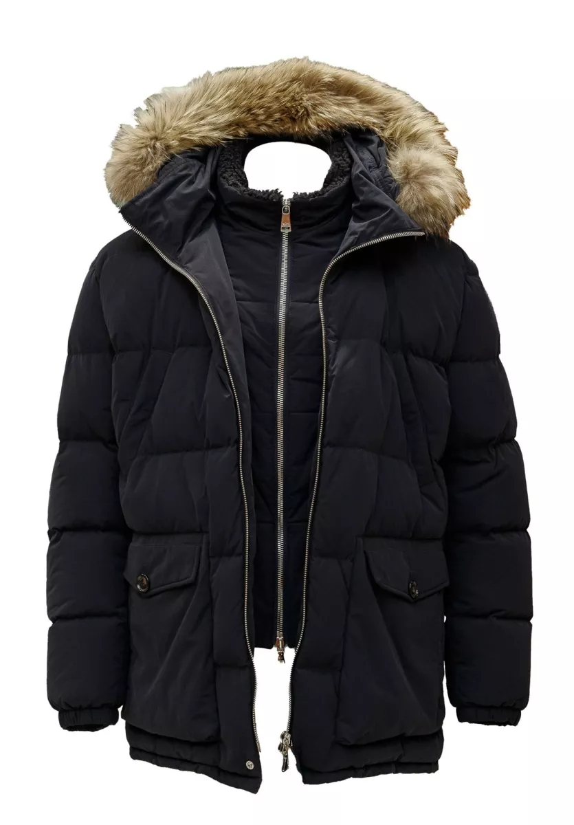Утепленное пальто с подстежкой Paul Shark надежно защитит от холода и ветра благодаря технологии Fill Power 700, плотному капюшону, кулискам по низу изделия и самой подстежке.