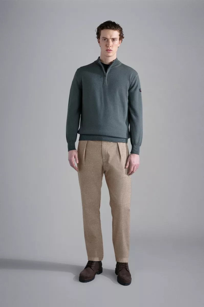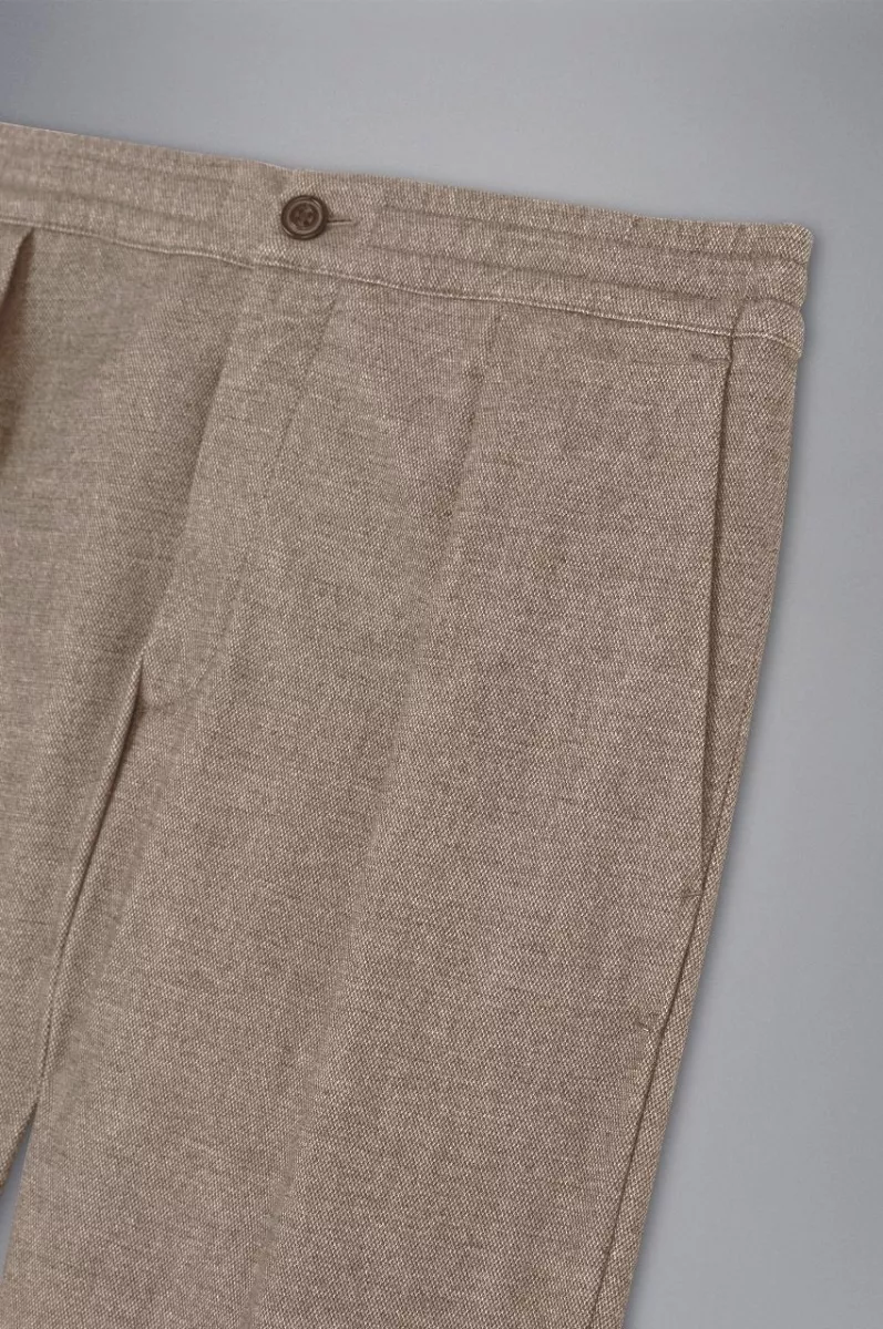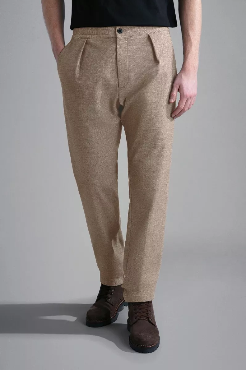 Брюки-чиносы с защипом, стандартного кроя, на молнии и пуговичной застежке. По бокам врезные карманы и на пуговицах сзади