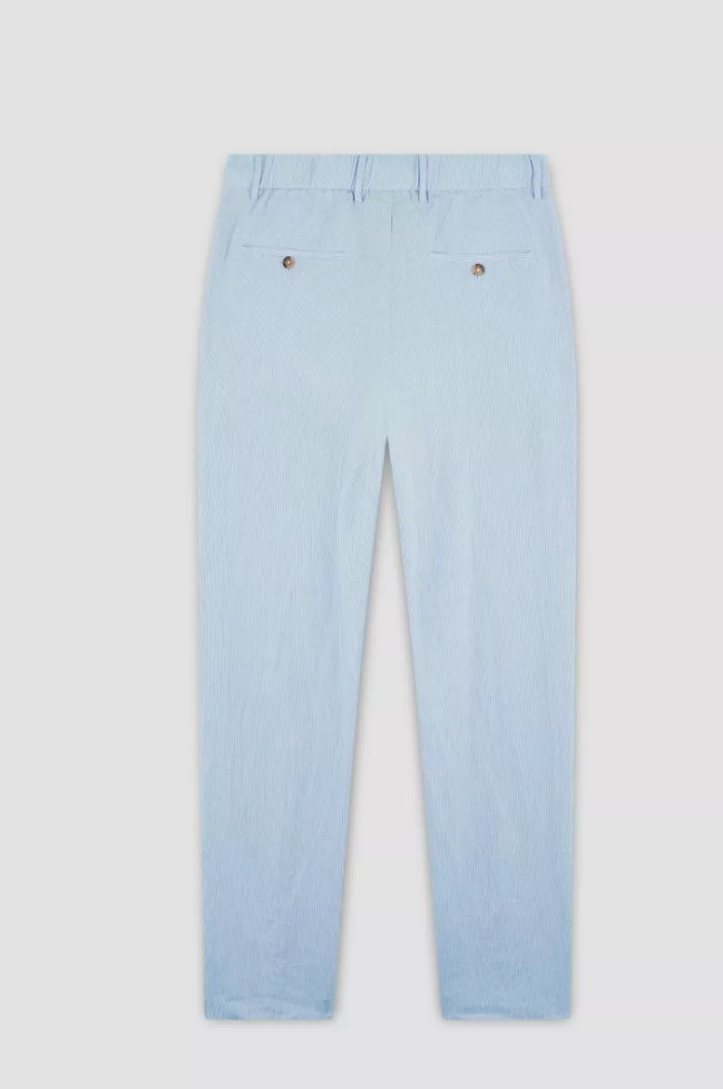 Неподвластный времени стиль в сочетании с роскошными материалами и богатым наследием Paul & Shark. Эти брюки-чинос изготовлены из чистого льна, прошедшего специальную обработку для придания ещё большей мягкости, и дополнены полосатым рисунком в свежих тонах, вдохновлённых цветами океана. С эластичной резинкой на талии и нашей культовой вышивкой в виде акулы