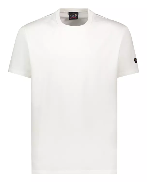 Белая однотонная футболка из хлопка с перфорацией на спине. Прямой крой, фирменное лого на левом плече