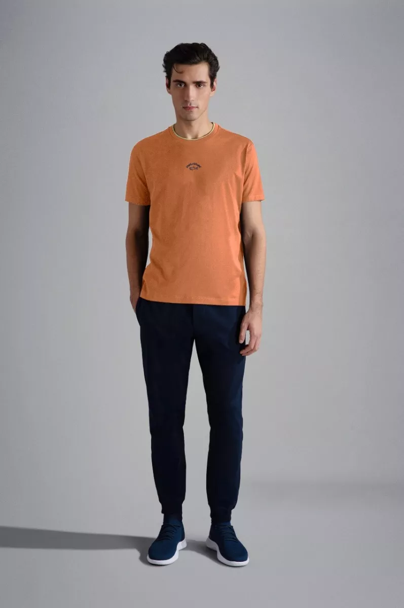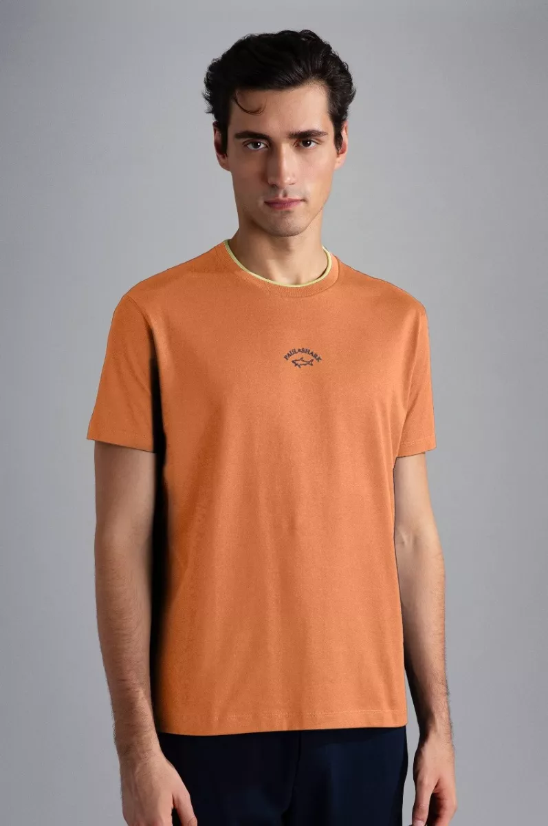 Футболка из эластичного джерси отлично пропускает воздух и комфортно облегает тело, не сковывая движения. Модель украсили логотипом на груди и подчеркнули круглую горловину контрастной полоской