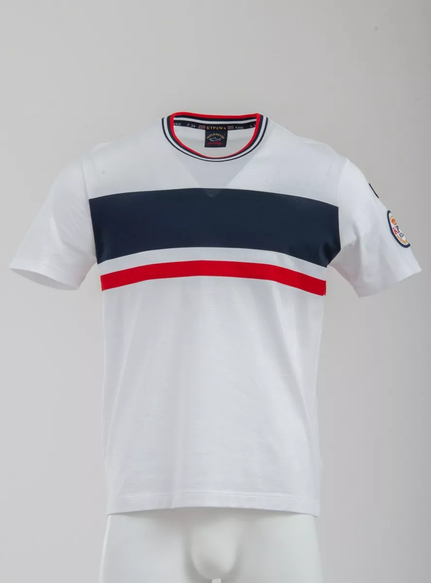 Футболка с коротким рукавом из коллекции KIPAWA с контрастными полосками на груди. Выполнена из 100% органического хлопка. Нашивки на рукавах.