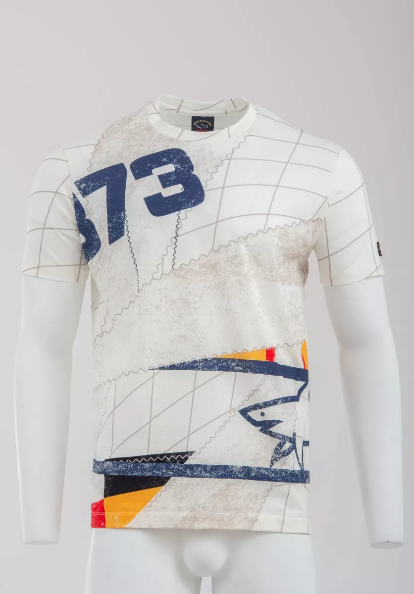 Футболка с коротким рукавом из 100% органического хлопка. Принт коллекции Giraglia повторяет парус лодки, участвовавшей в соревнованиях Giraglia Cup