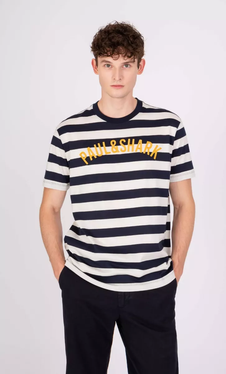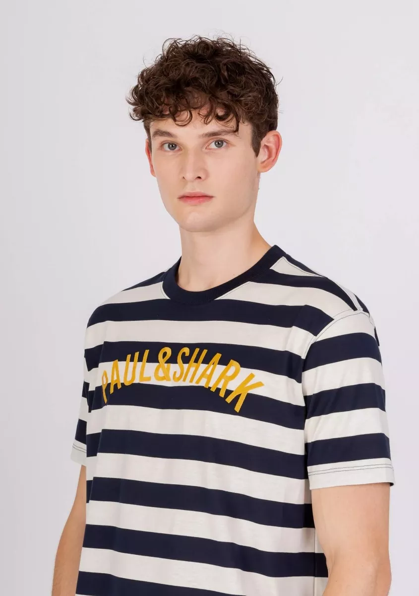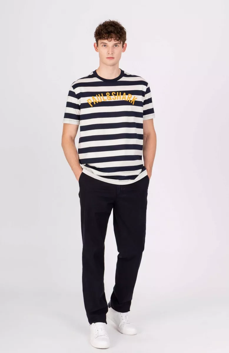 Полосатая футболка с коротким рукавом из органического хлопка и желтым лого на груди