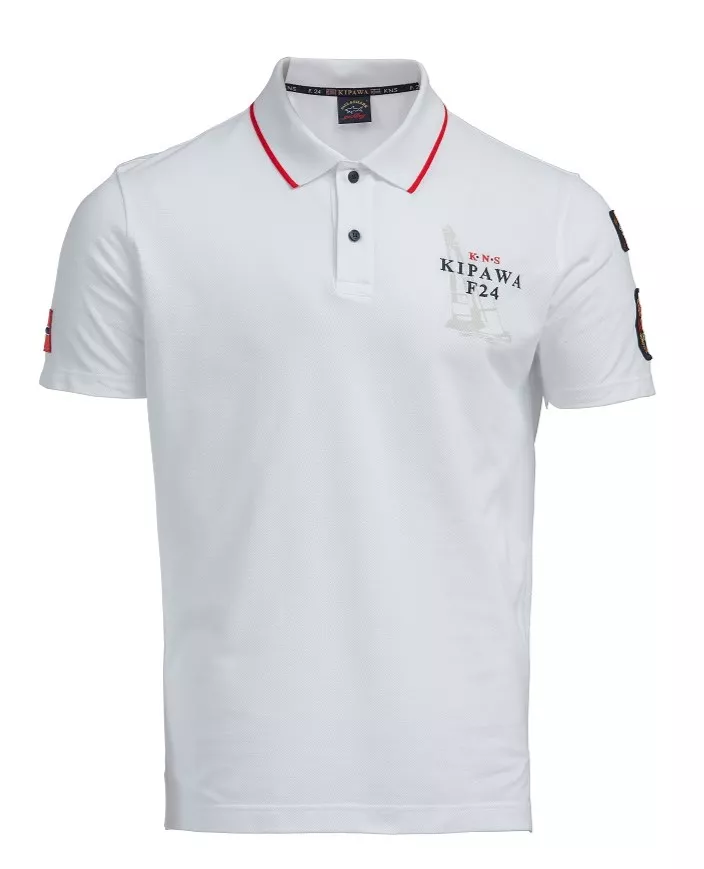 Однотонное поло Kipawa из органического хлопка пике. Нашивки на рукавах, контрастная вставка на воротнике
