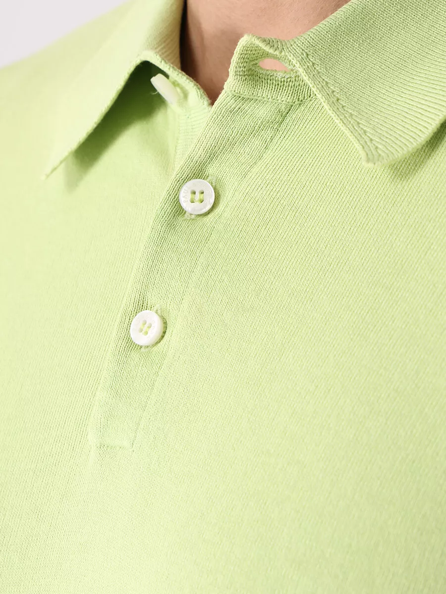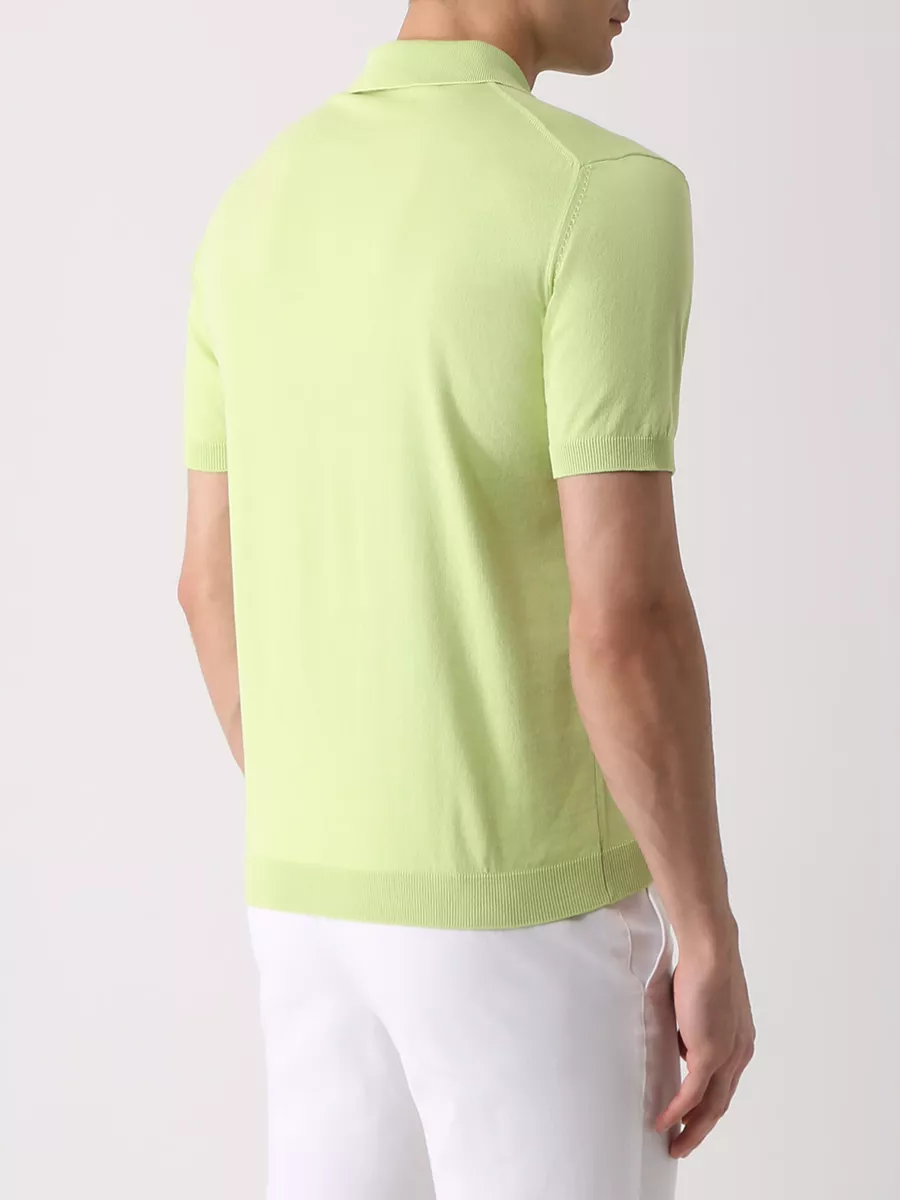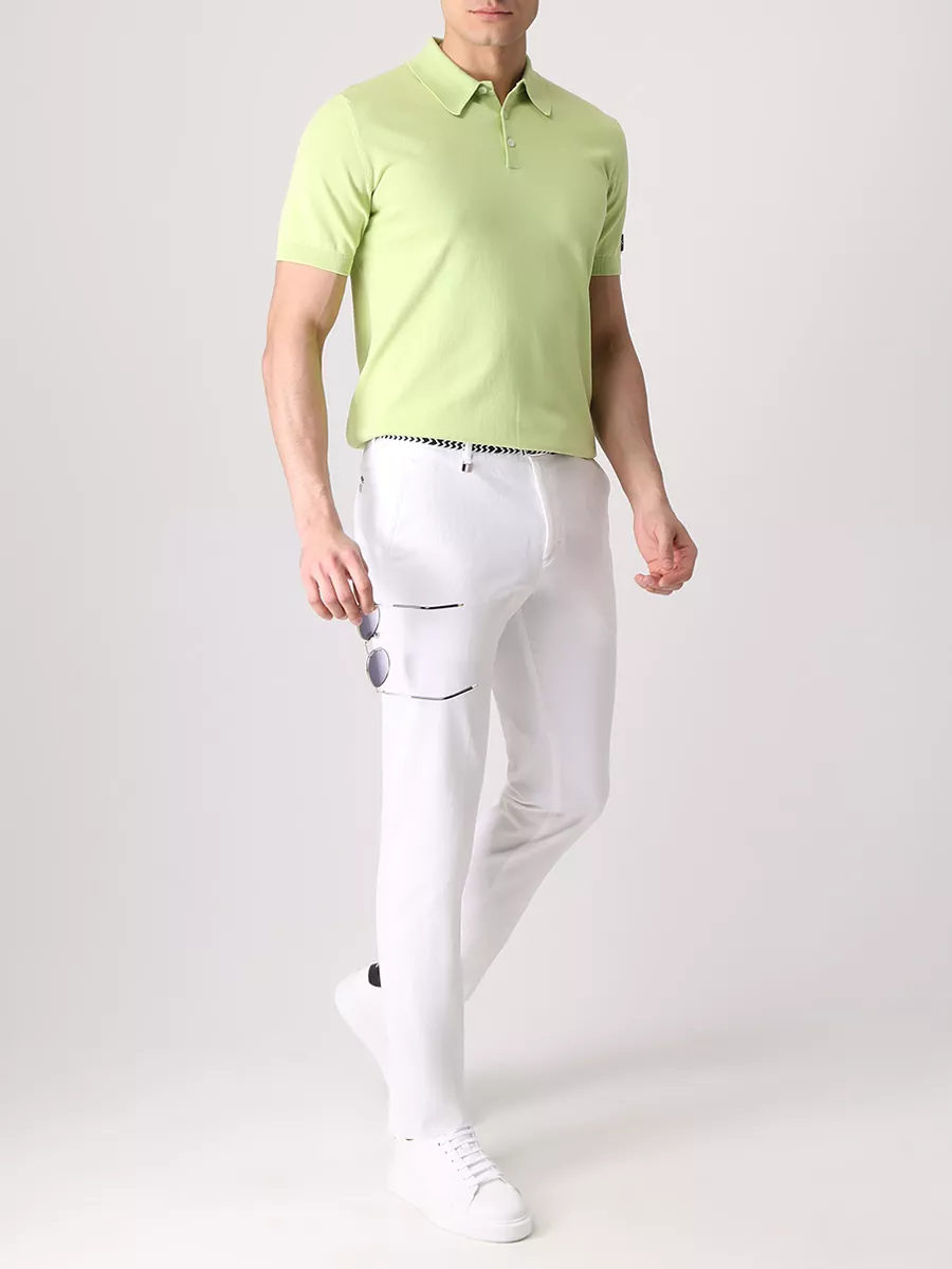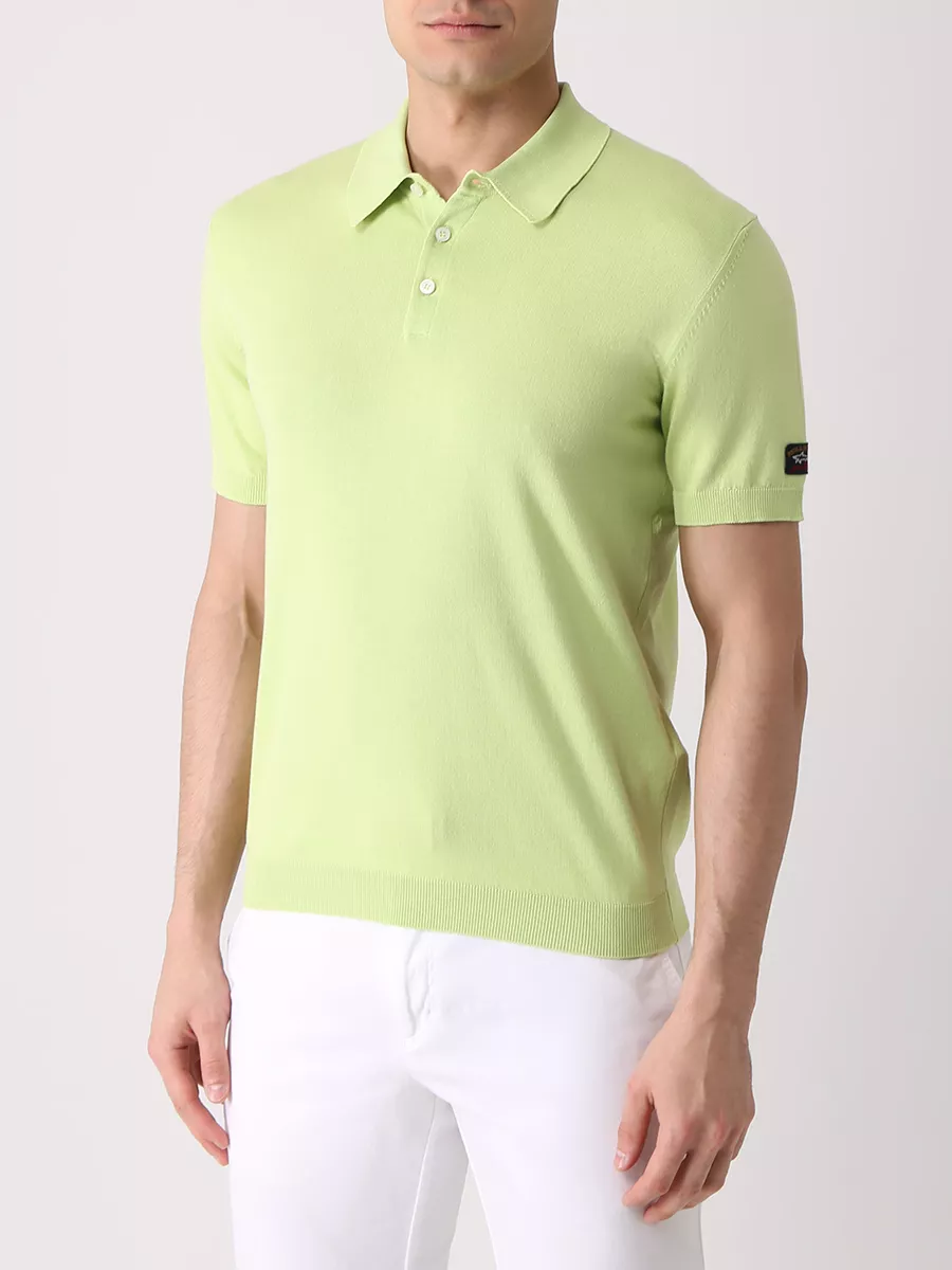 Однотонное лаконичное поло сшито из гладкого тонкого трикотажа на основе премиального органического хлопка. Левый рукав украшен небольшим фирменным патчем с логотипом