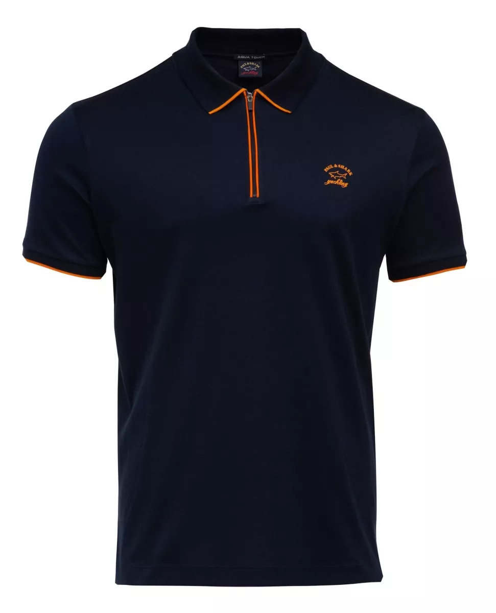 Поло из водоотталкивающего двойного трикотажа на основе органического хлопка с нашивкой в виде логотипа. Ворот с застежкой-молнией, отделка в рубчик