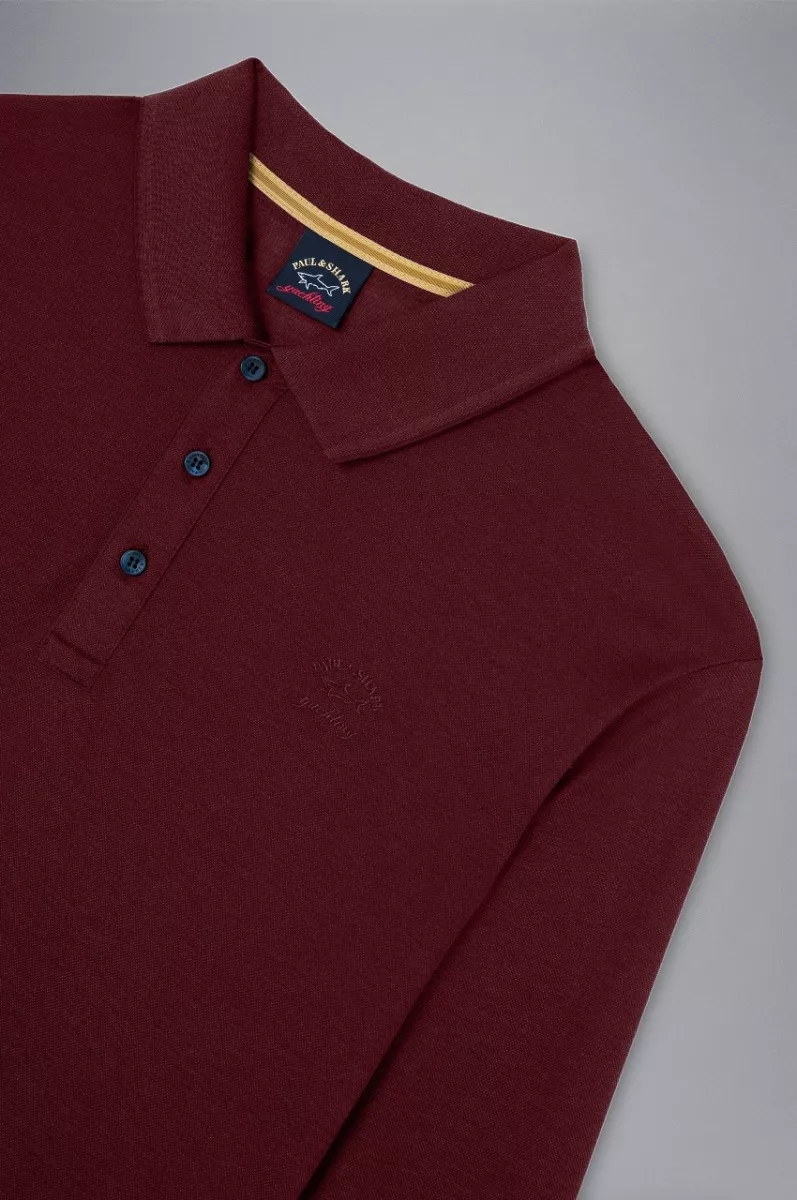 Поло с длинными рукавами будет уместно как в расслабленных повседневных, так и в более формальных образах. Изделие выполнено из мягкого хлопкового пике, которое хорошо пропускает воздух. Модель украшена полосками на воротнике и эластичными манжетами, а также вышивкой в виде логотипа и эмблемы