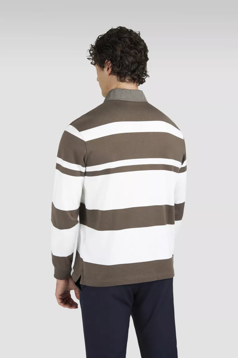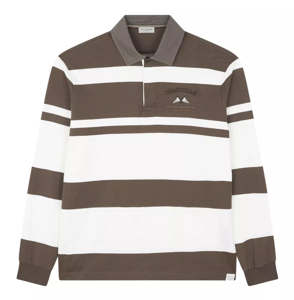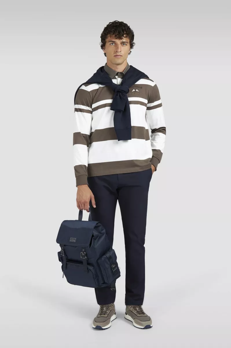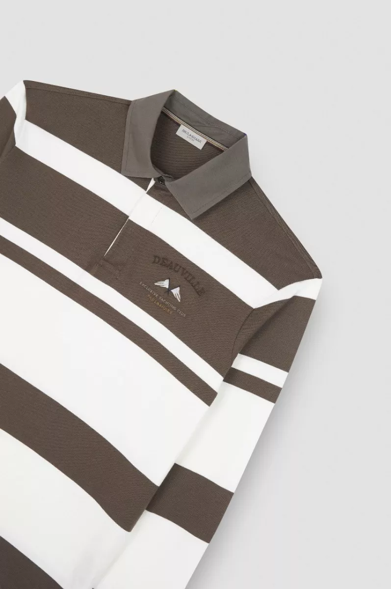 Интерпретация классической регбийной рубашки от Paul & Shark создана для того, чтобы привносить непринуждённую элегантность даже в повседневные образы. Этот предмет одежды выполнен из хлопкового джерси с характерными крупными полосами и контрастным воротником из ткани. Вышитые на груди морские флаги отдают дань нашему богатому парусному наследию