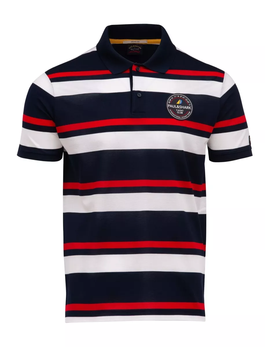 Полосатое поло с крупным логотипом на левой груди с отложным воротником на 2-х пуговицах, коллекция ARCHIVO