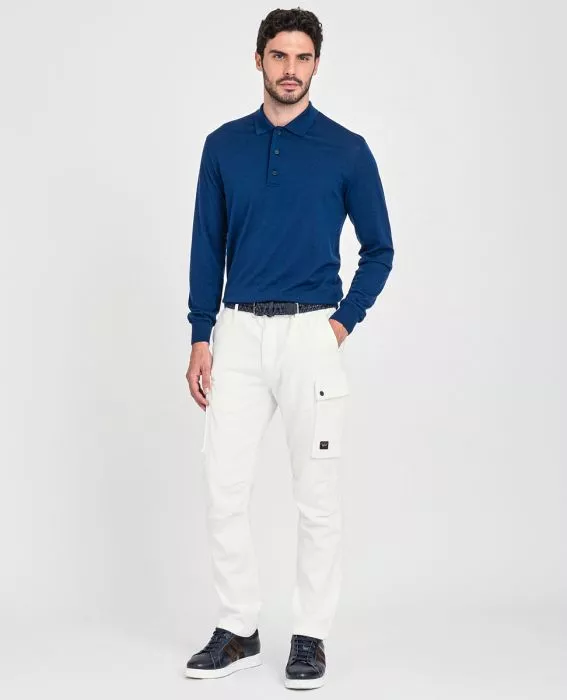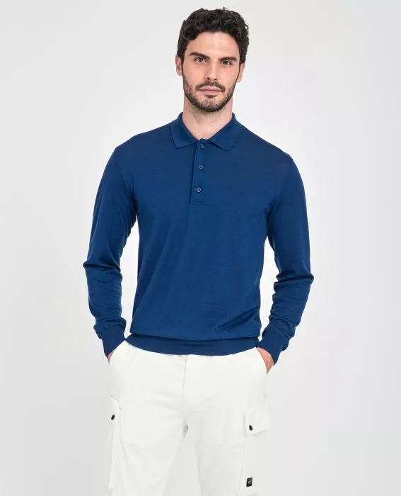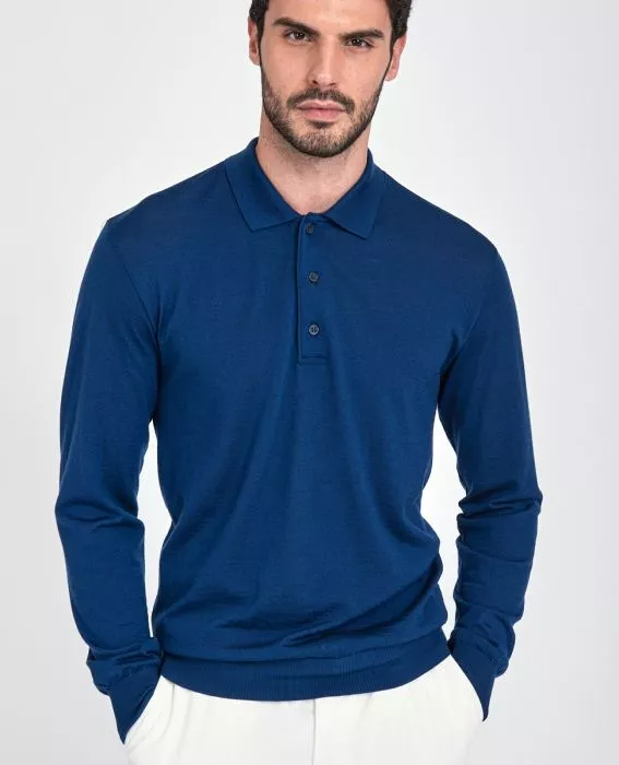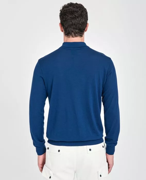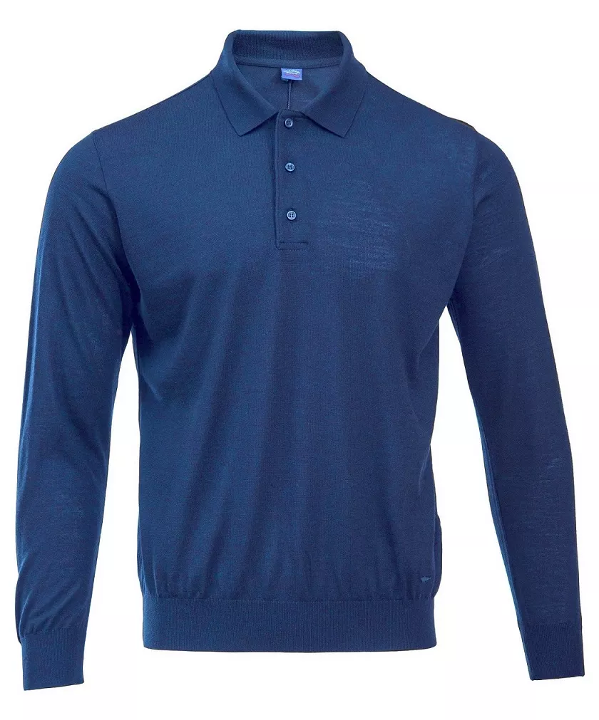Шерстяное поло из базовой коллекции с длинным рукавом. Воротник с застежкой на 3 пуговицы, вышитый логотип снизу изделия