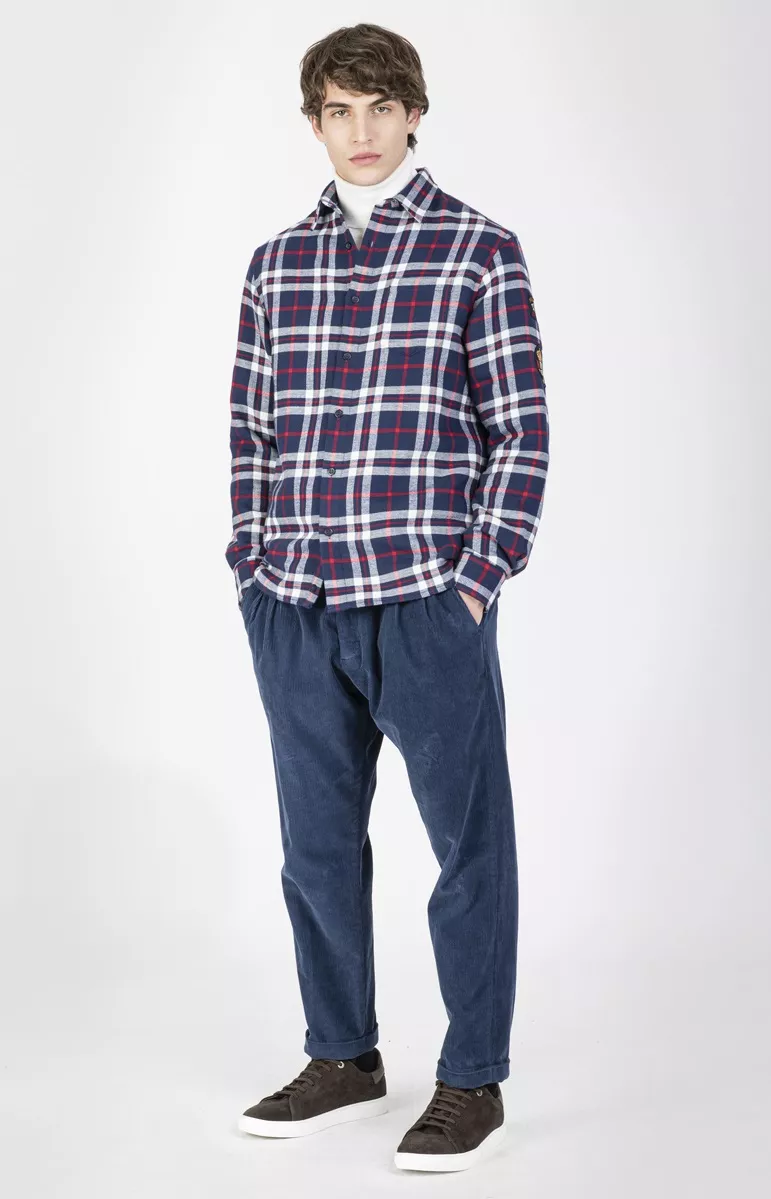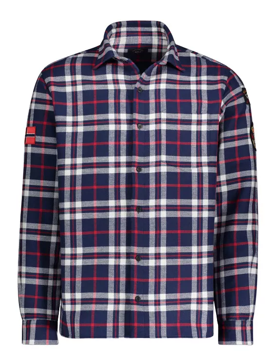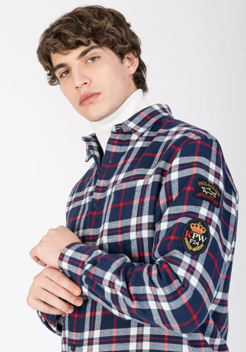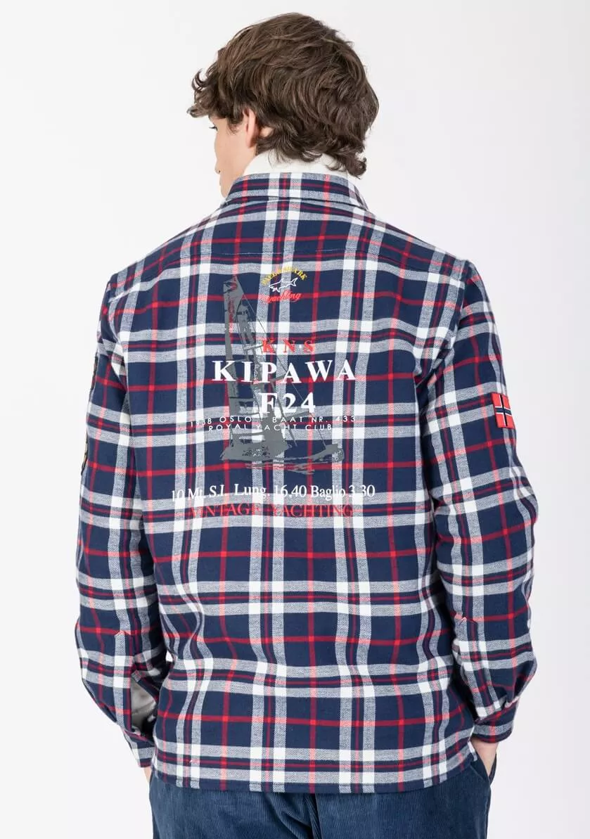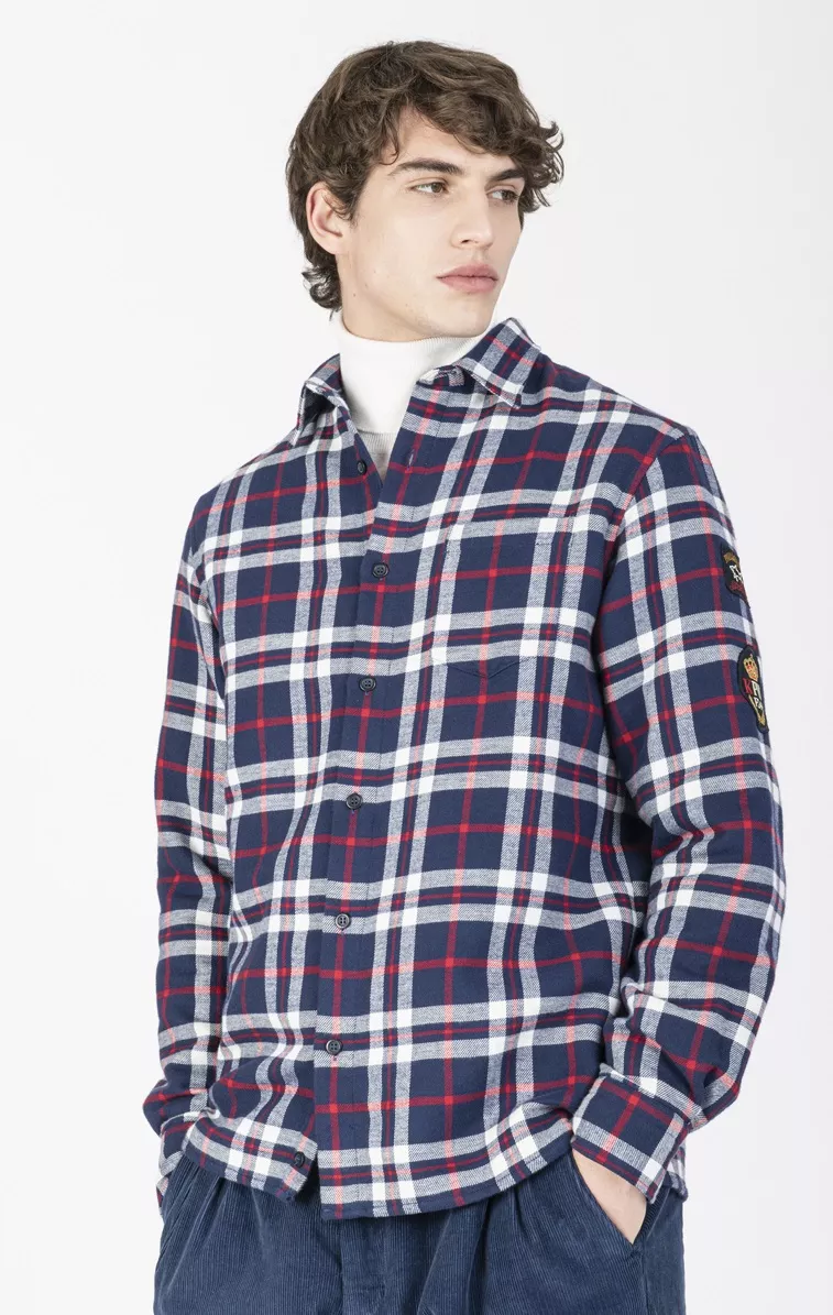 Клетчатая рубашка Kipawa из плотного хлопка, орнамент «тартан». Фирменные логотипа на рукавах, нашивки в виде флага и герба.