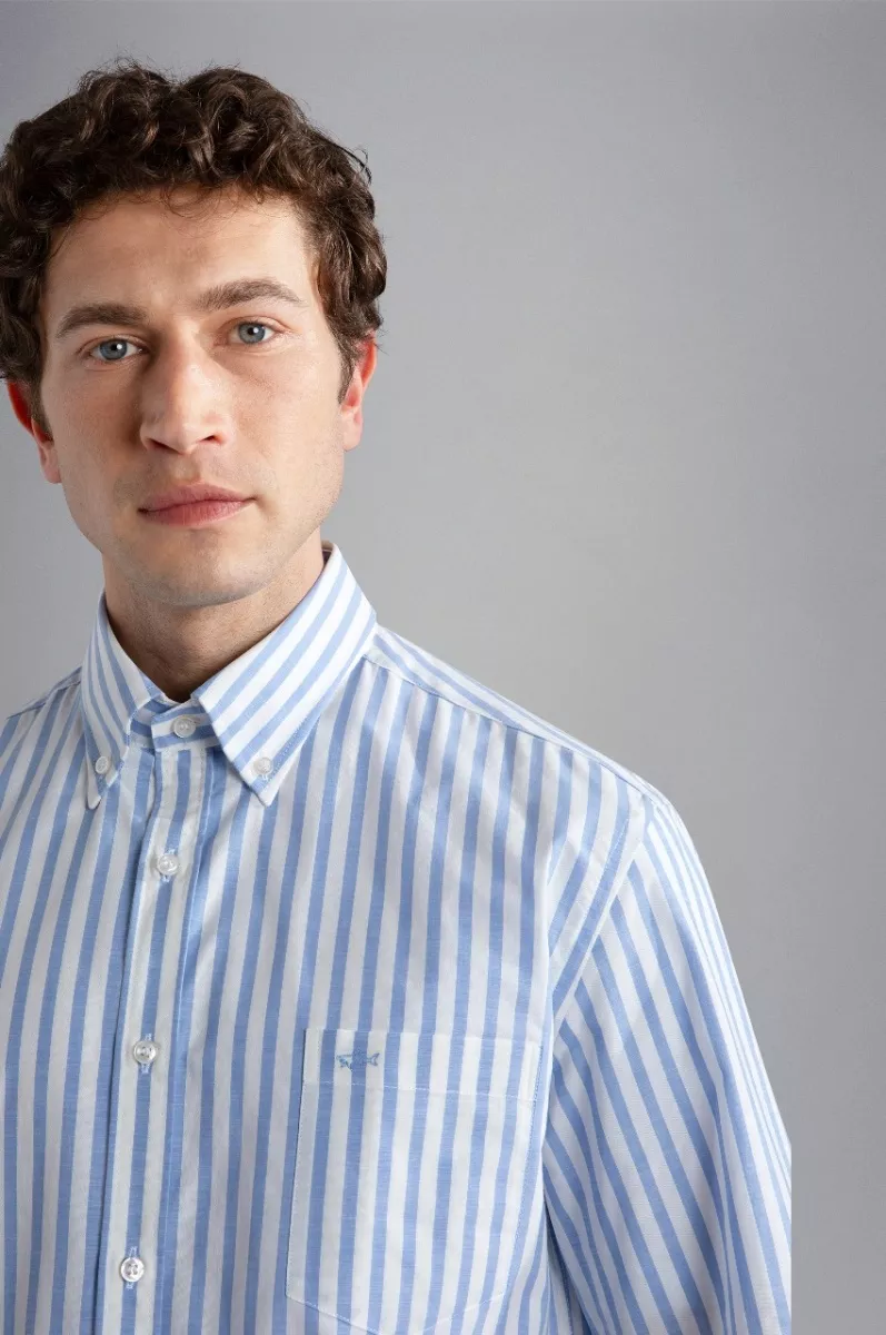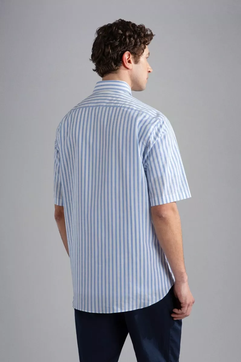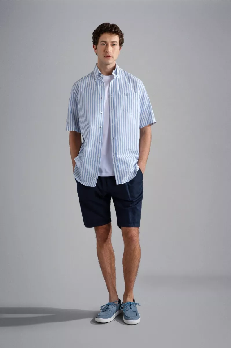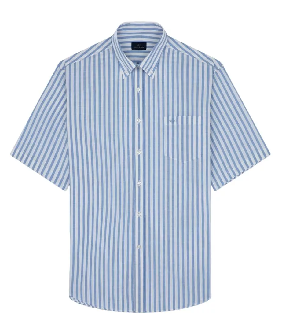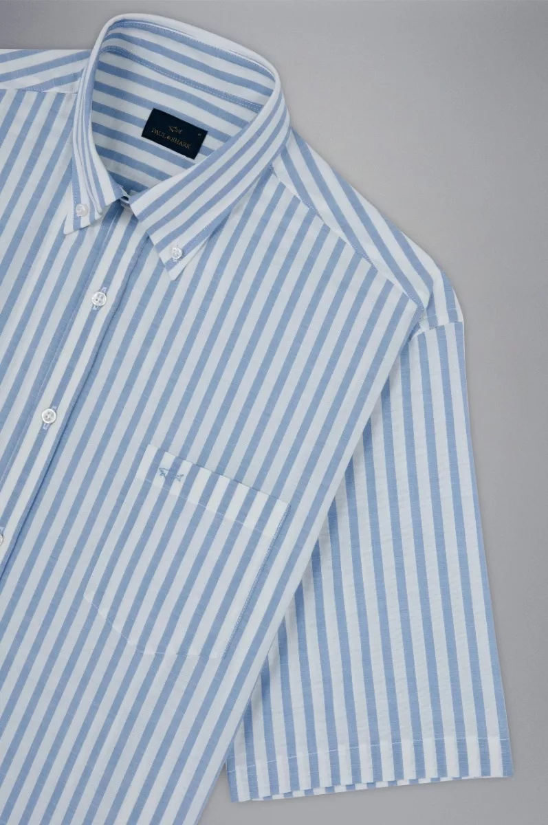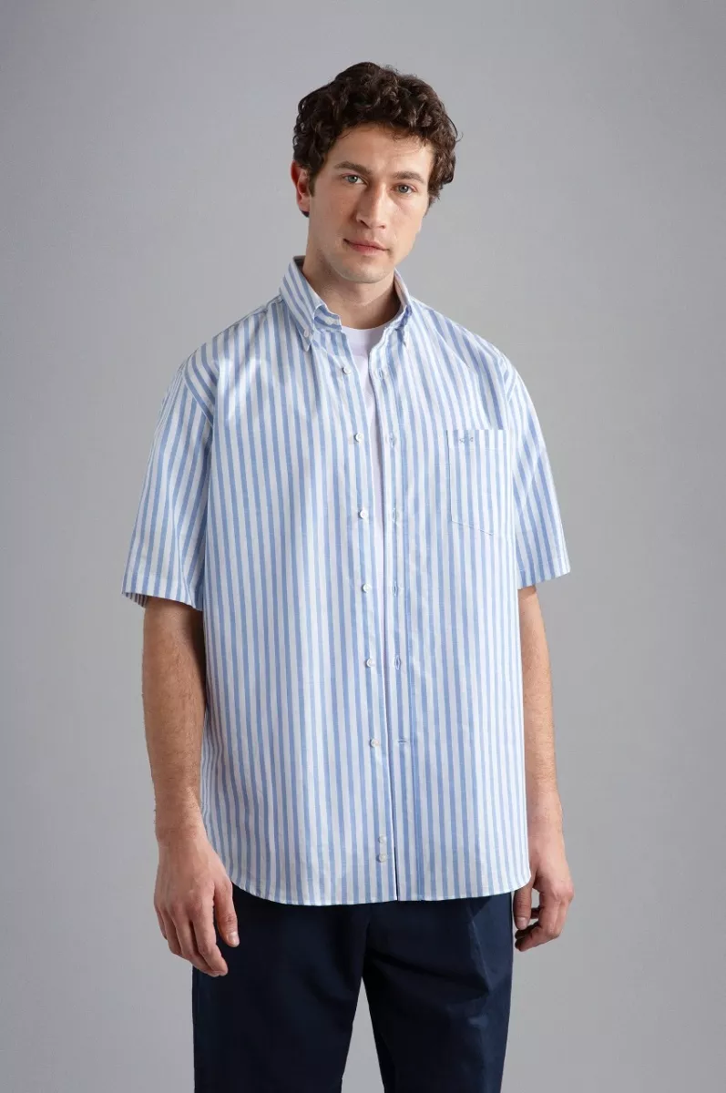 Рубашка в полоску изготовлена из 100% хлопка - материала, известного своей воздухопроницаемостью и комфортом. Воротник на пуговицах, прямой крой, нагрудный карман — эти детали придают ей непринужденный вид, подходящий как для повседневных случаев, офисной обстановки, так и для неформальных светских мероприятий. Короткие рукава — отличный вариант для теплых дней или для расслабленного образа. Внимание к деталям проявляется в неброском логотипе на нагрудном кармане, подчеркивающим узнаваемый имидж бренда