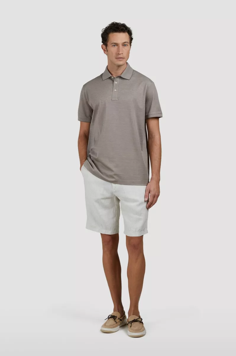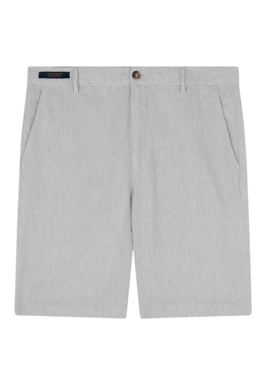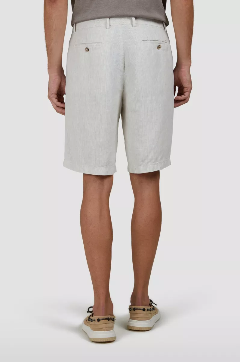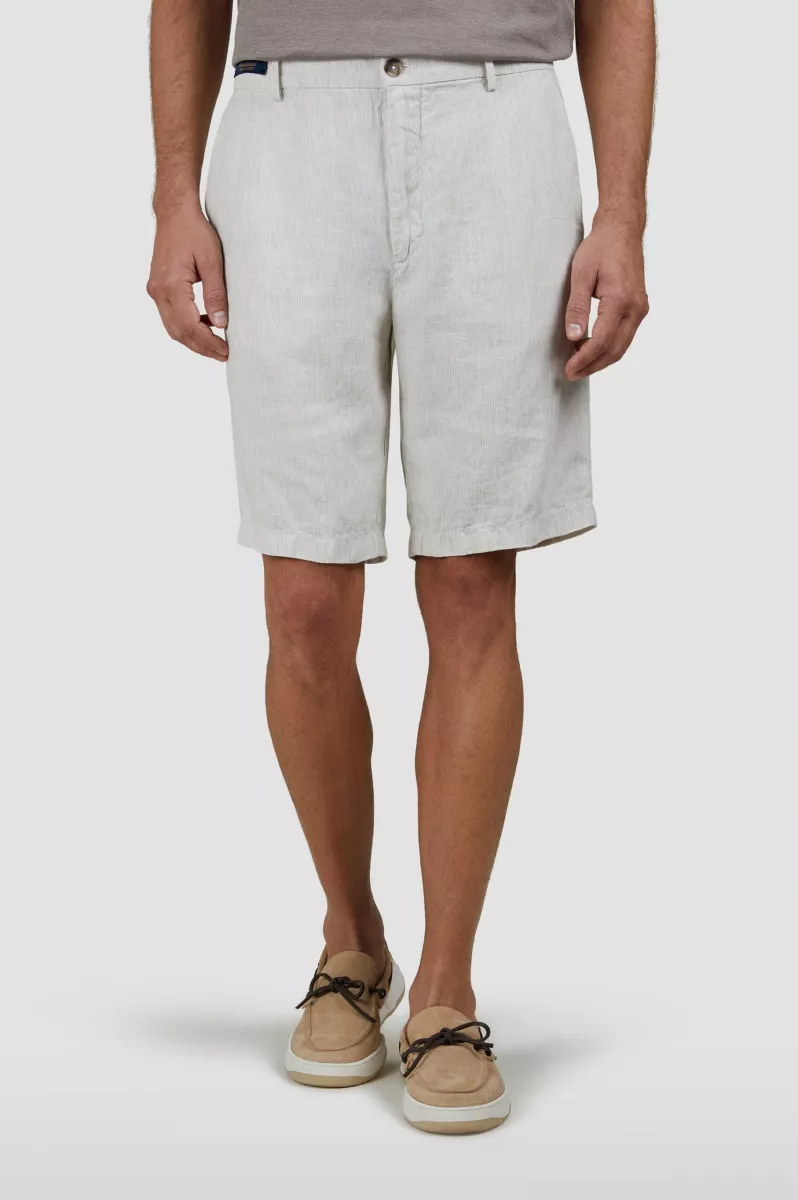 Шорты с брендированной нашивкой на поясе и двумя парами карманов выполнили изо льна в тонкую полоску. Лаконичный дизайн с прямыми штанинами делает их универсальным выбором для любых случаев