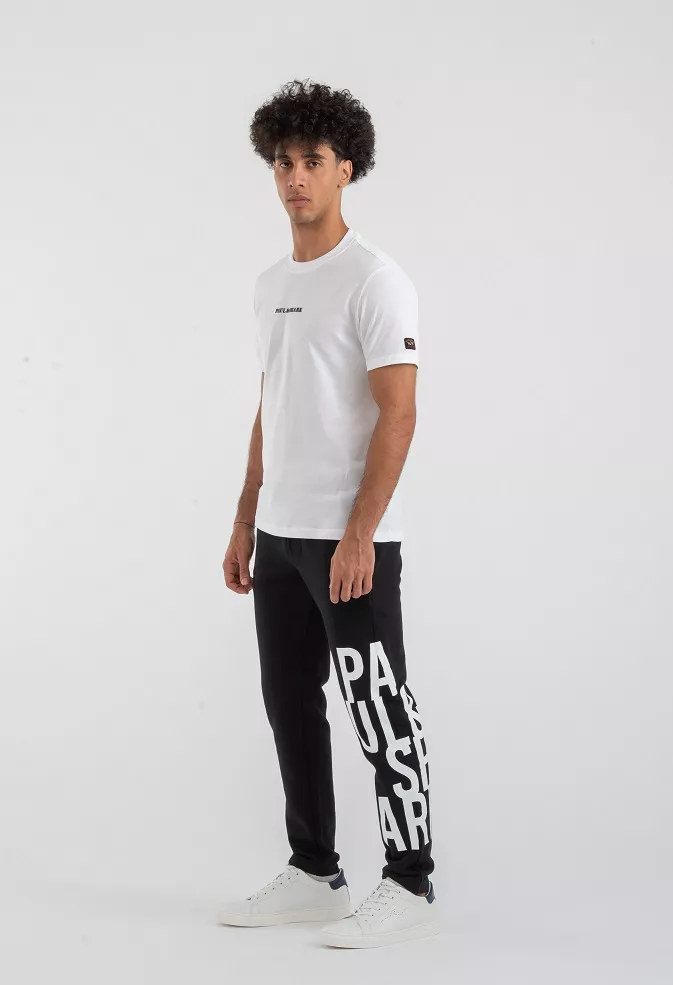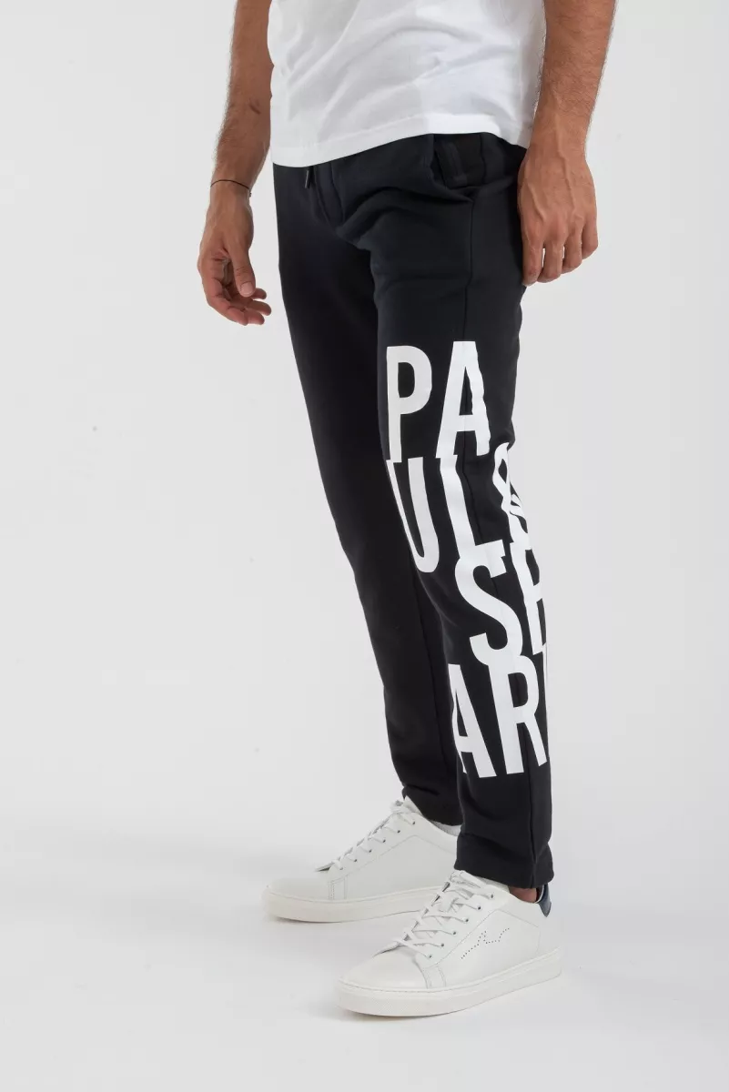Спортивные брюки на кулиске с фирменным принтом на левой штанине