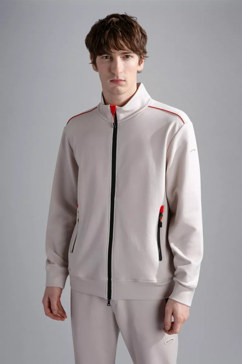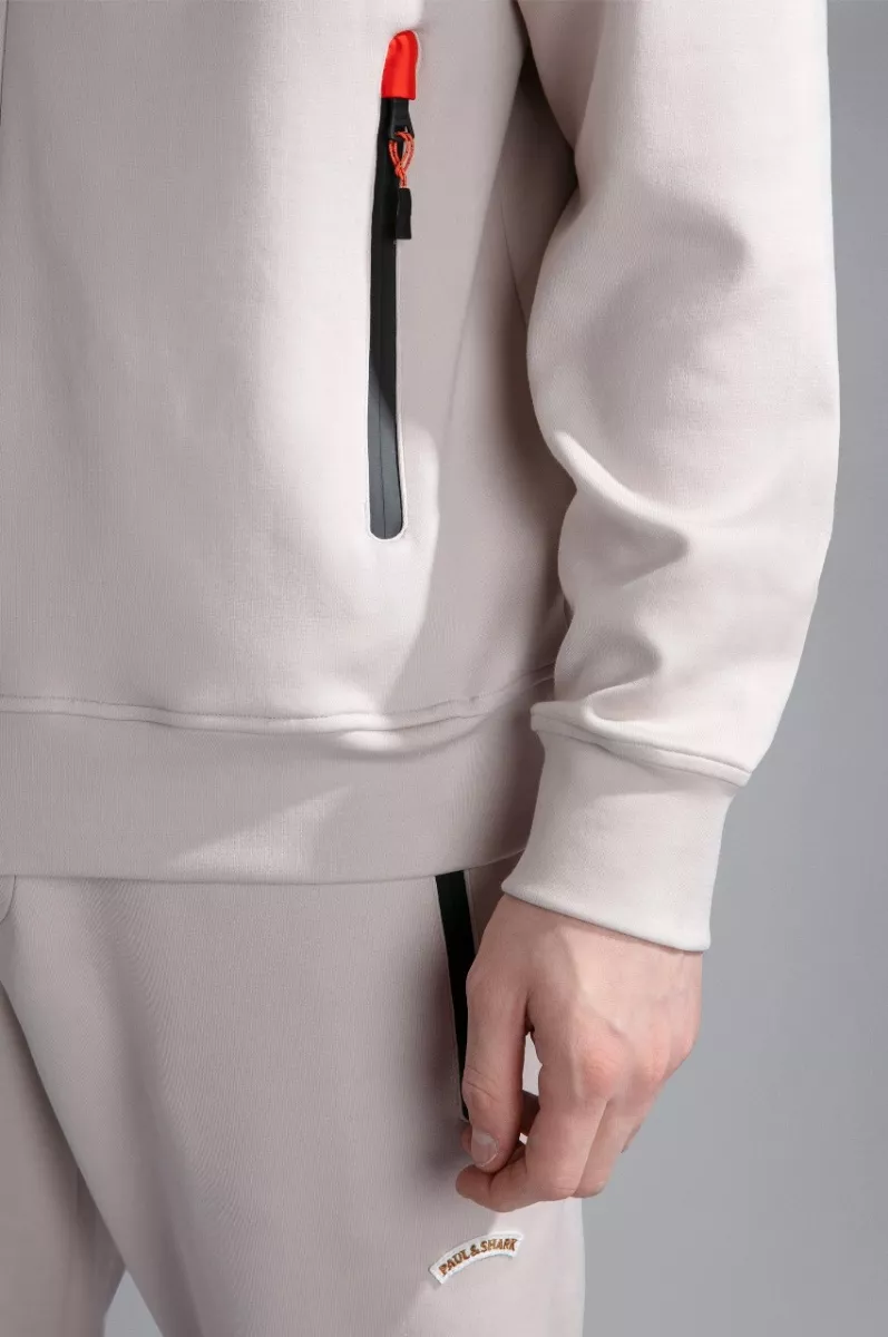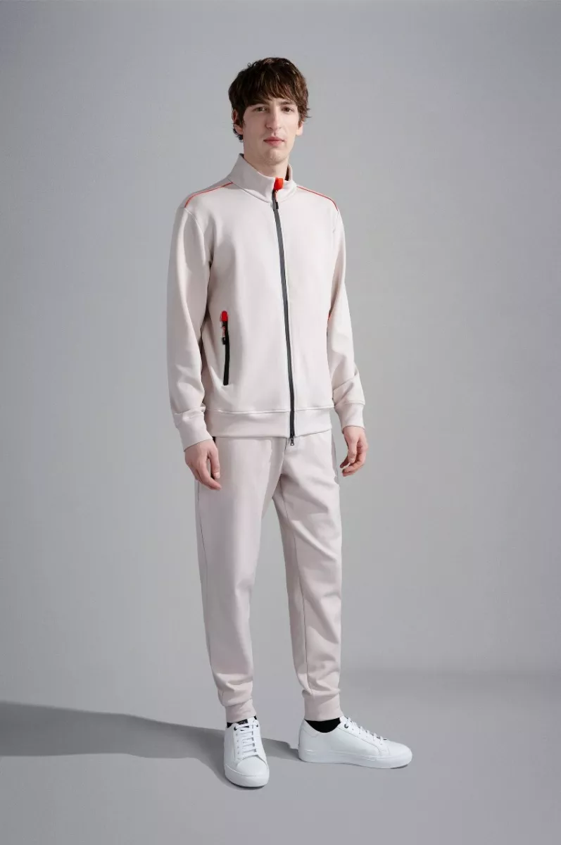 Для пошива спортивного костюма использовали мягкий трикотаж из отборного хлопка с добавлением стрейчевых волокон. Такой материал не мешает воздуху циркулировать, быстро отводит влагу и обеспечивают полную свободу движений. Толстовку и джоггеры, с регулируемым поясом-кулиской, украсили эмблемой и контрастными элементами