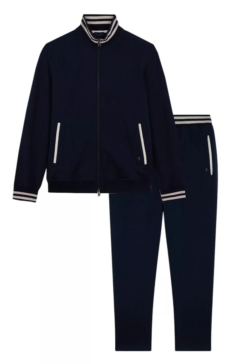 Этот спортивный костюм из хлопка и лиоцелла обработан специальным составом X-Soft, который делает его ещё более приятным к телу. Модель дополнена удобными карманами, практичной двусторонней молнией в спорт куртке и отделкой в полоску на манжетах в изысканных тонах