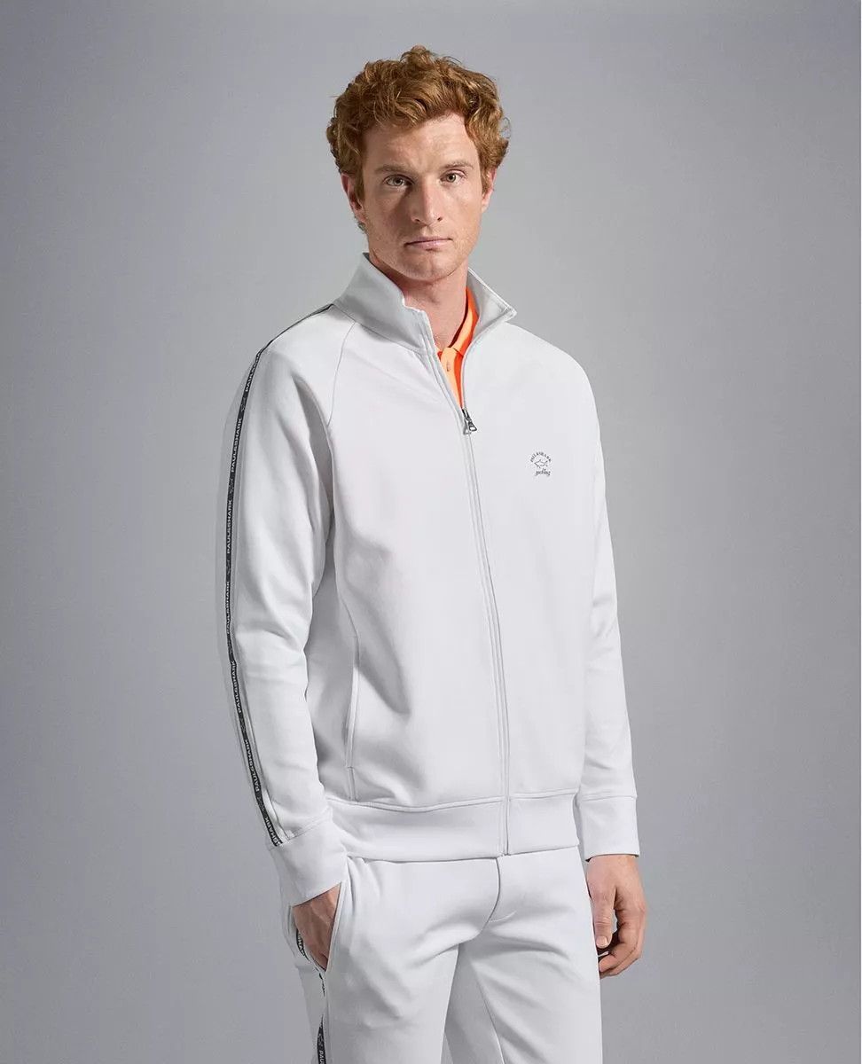 Хлопковая спортивная куртка на молнии. Стандартный крой, брендовые светоотражающие лампасы. Двусторняя застежка молния, врезные карманы по бокам