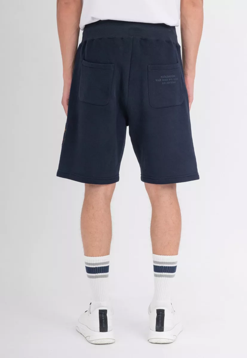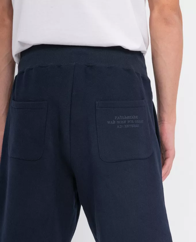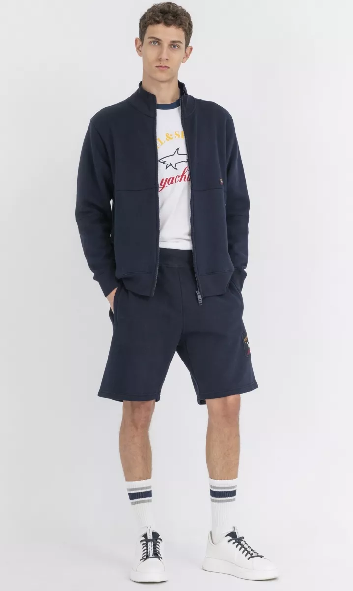 Шорты-бермуды из теплого флиса на основе органического хлопка. Боковые карманы, крупная нашивка с фирменным логотипом слева. Однотонная модель, пояс в рубчик
