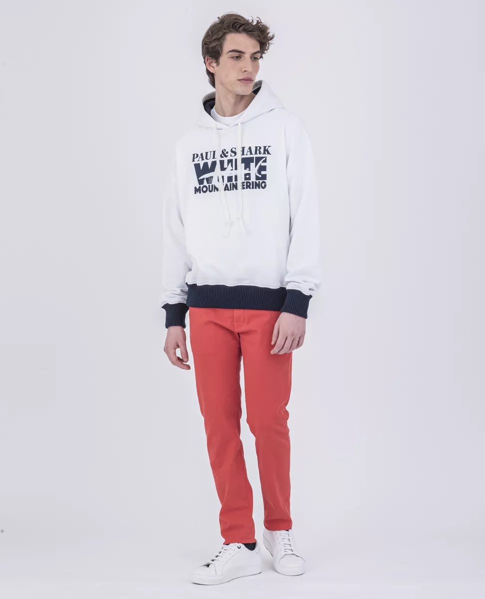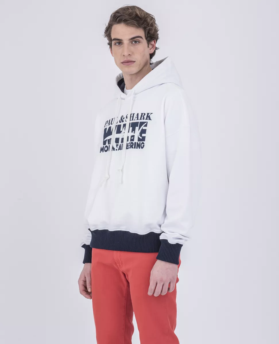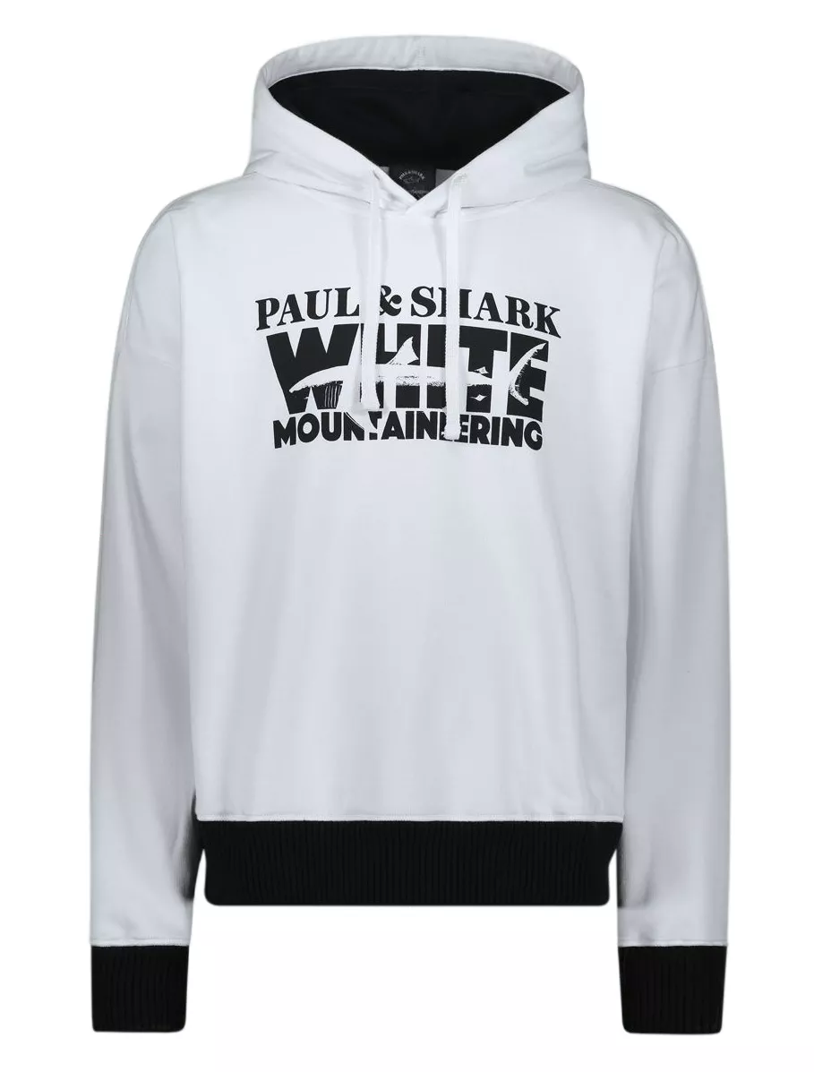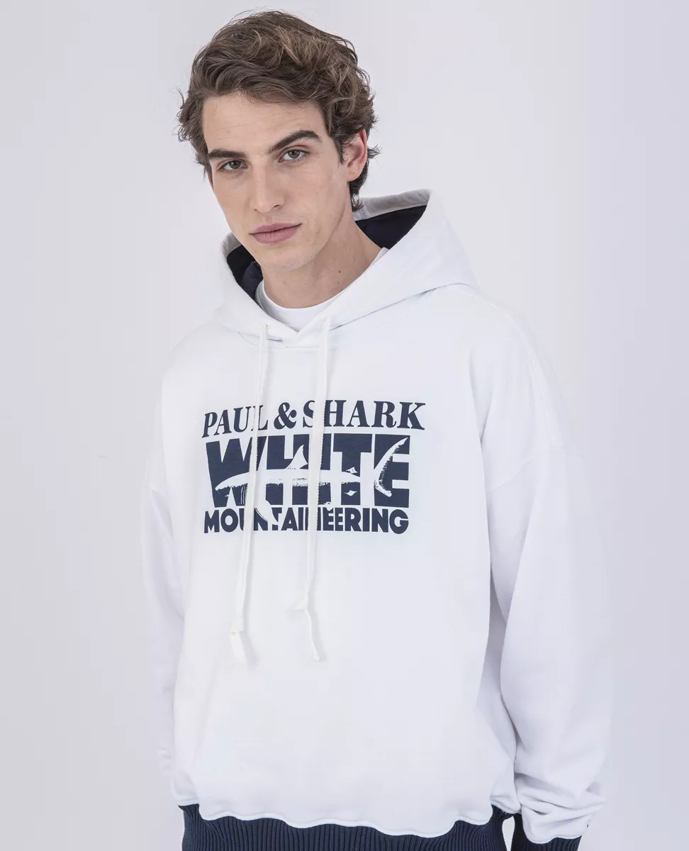 Худи White Mountaineering из органического хлопка. Крупное лого спереди изделия. Капюшон на кулиске, большой карман. Нижний край и манжеты с отделкой в рубчик