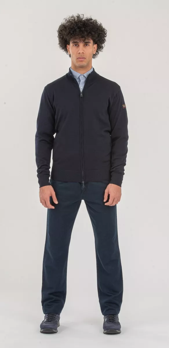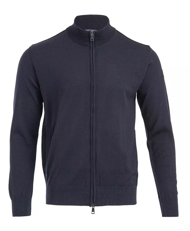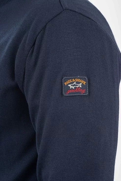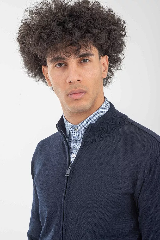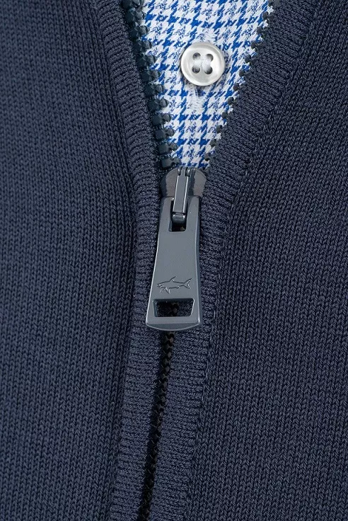 Кардиган на молнии с логотипом. Высокая горловина, трикотажная резинка, карманы.