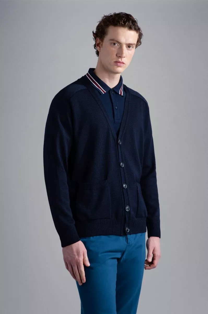 Кардиган Paul & Shark выполнен из инновационной шерсти Cool Touch, которая обеспечивает ощущение прохлады на коже. Придает элегантности любому образу, а накладные карманы делают модель еще более стильной