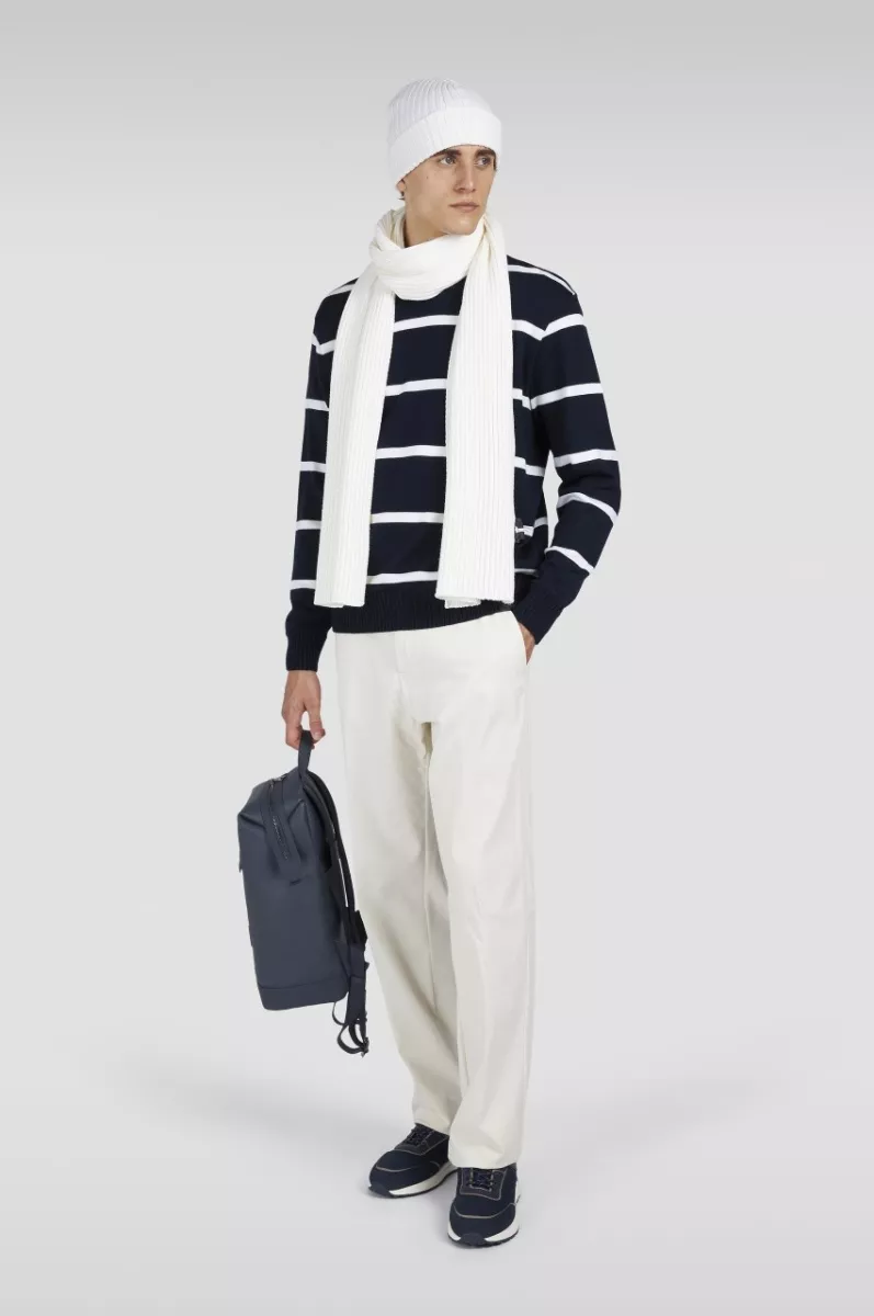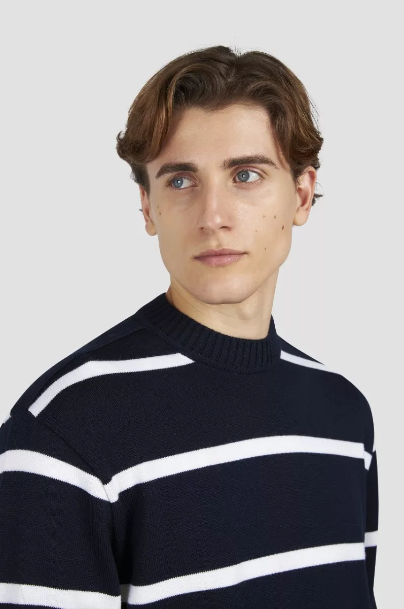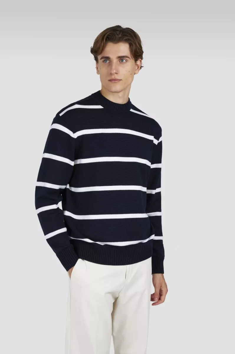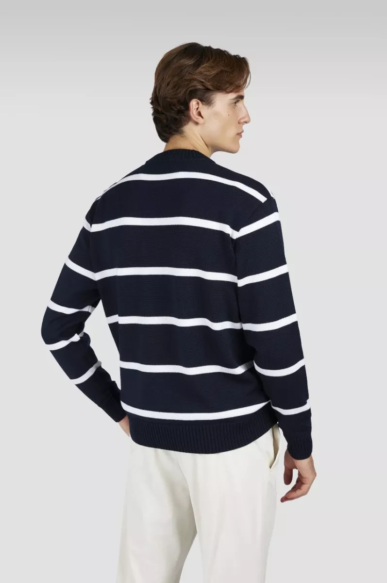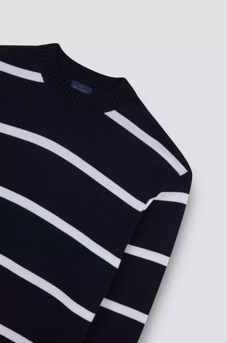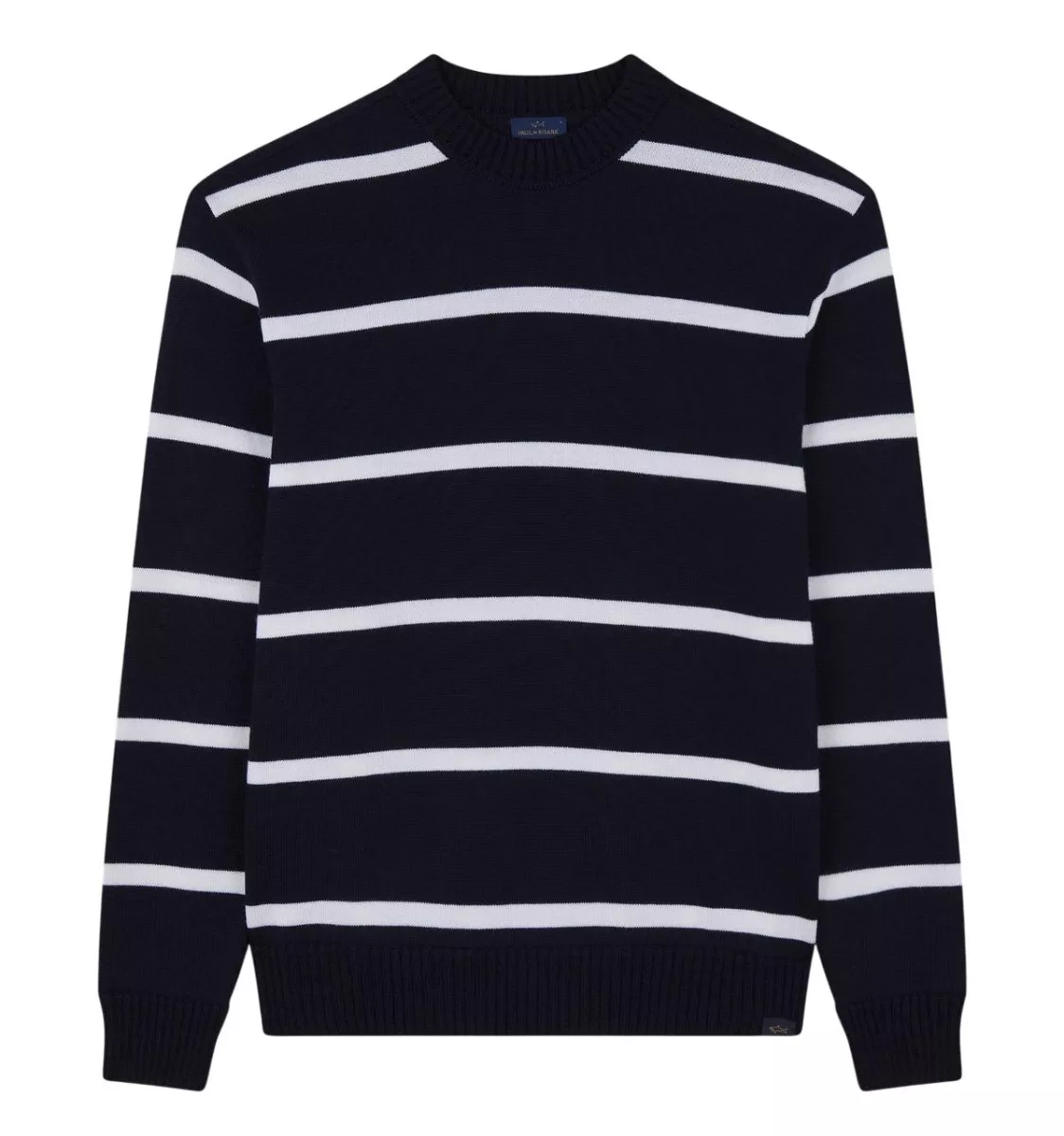Знаковые детали, мягкая пряжа и современные пропорции: этот свитер с круглым вырезом привносит выразительный стиль Paul & Shark в ваш повседневный гардероб. Это изделие связано из роскошной и уютной шерсти. Свитер украшен полосатым узором в фирменных цветах бренда и дополнен ребристыми вставками на манжетах для создания чёткого силуэта