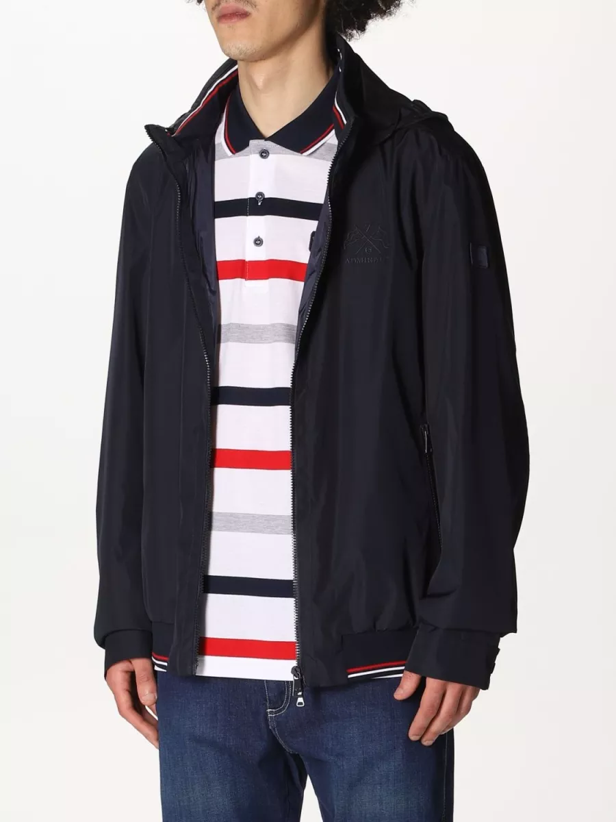 Куртка из коллекции ADMIRAL'S, с капюшоном. Модель выполнена из влагоотталкивающего и не продуваемого материала. Крой прямой, воротник и манжеты в рубчик
