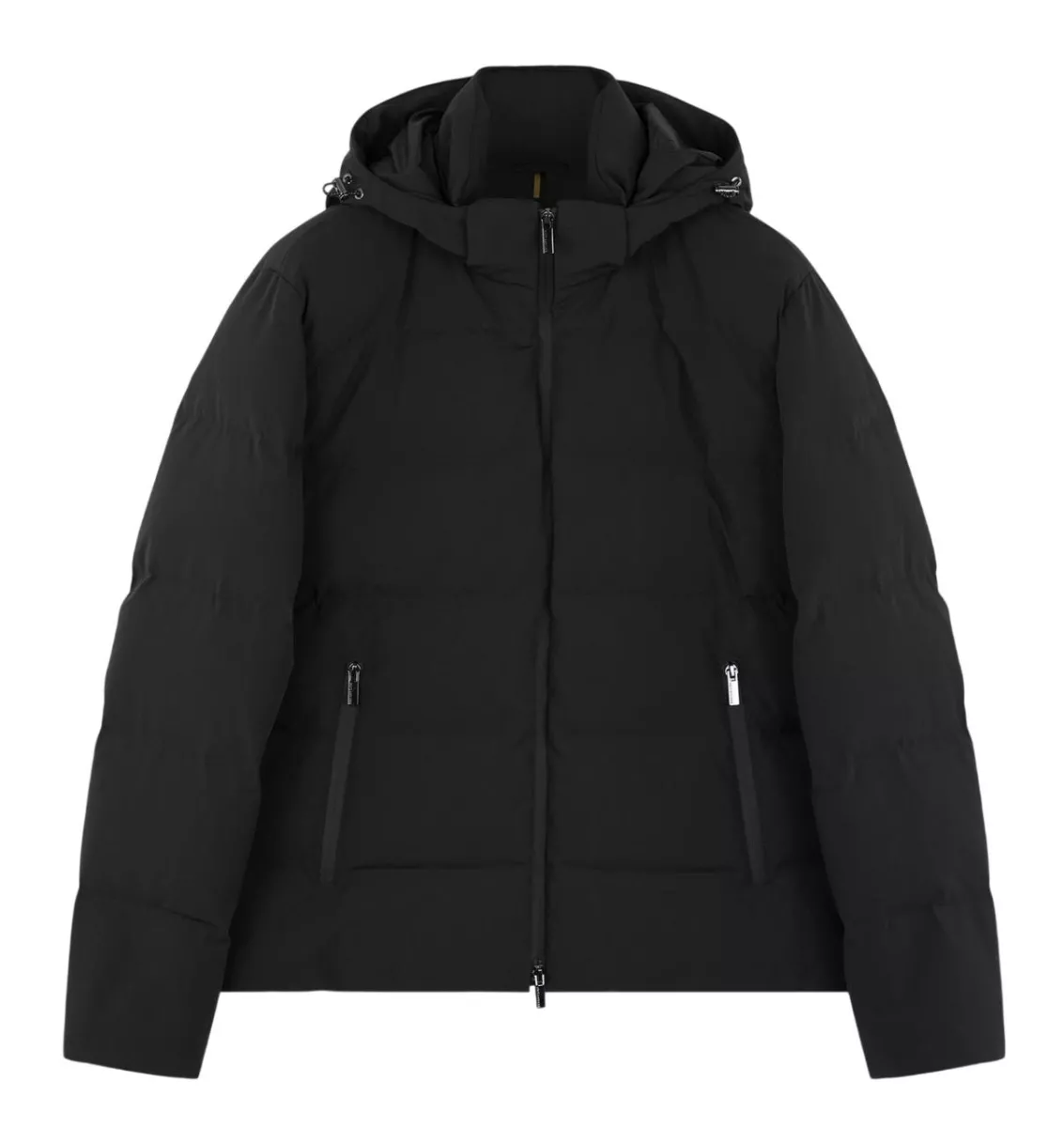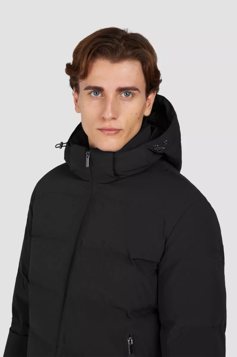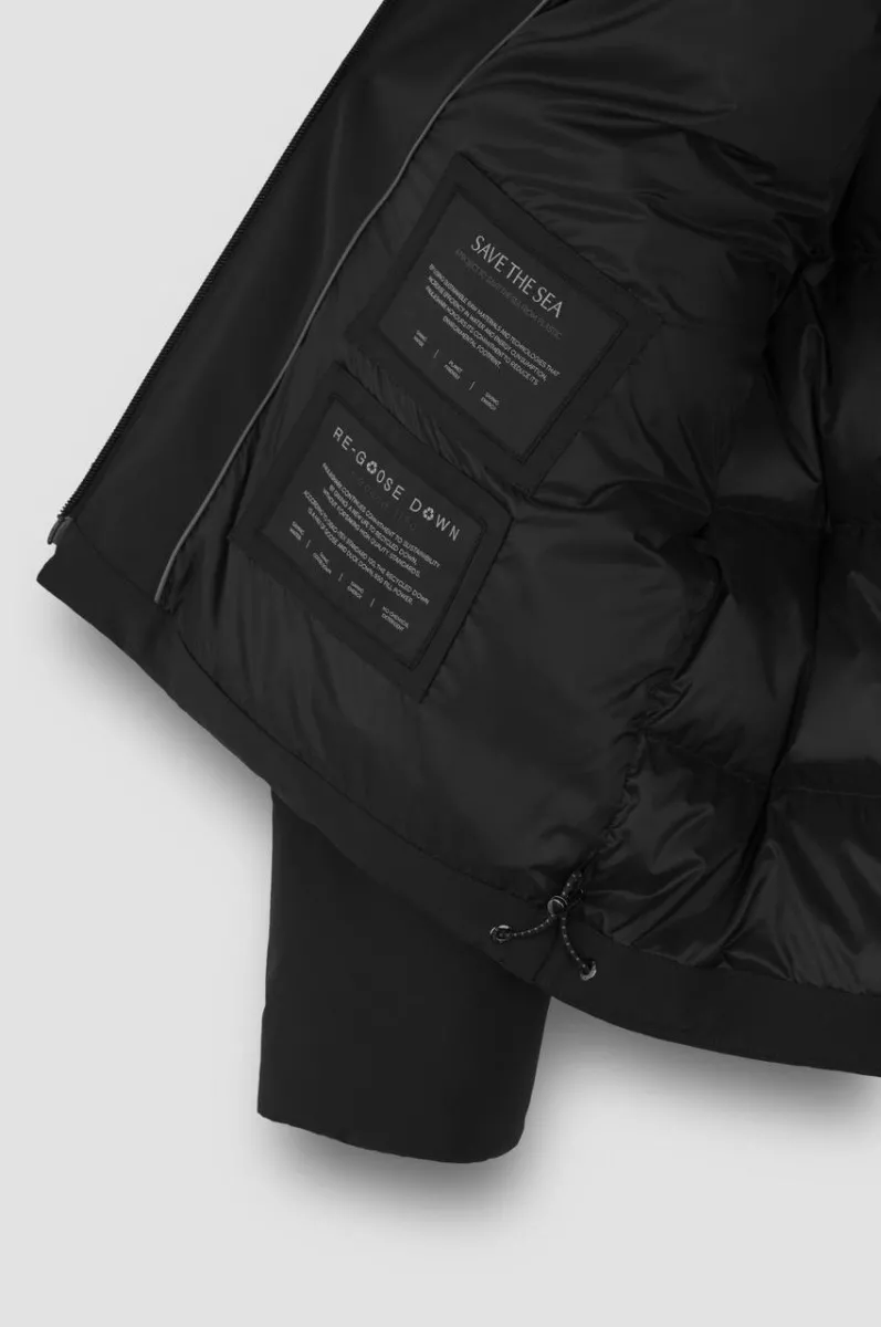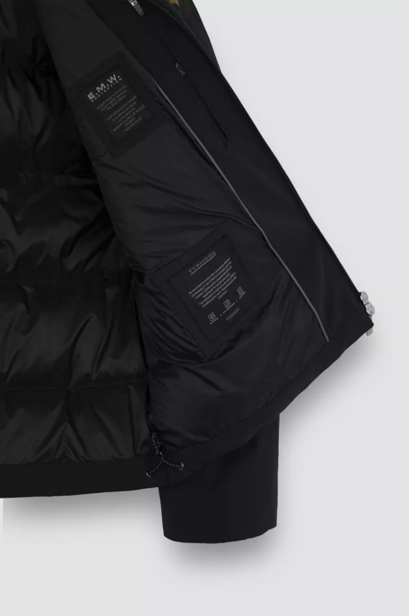 Наполнитель — пух Re-Goose с плотностью 650 (70% пухо, и 30% — перо). Внутри — блестящая подкладка, прекрасно сохраняющая тепло, а карман для смартфона изолирован с помощью технологии защиты от электромагнитных волн (E.M.W.)
