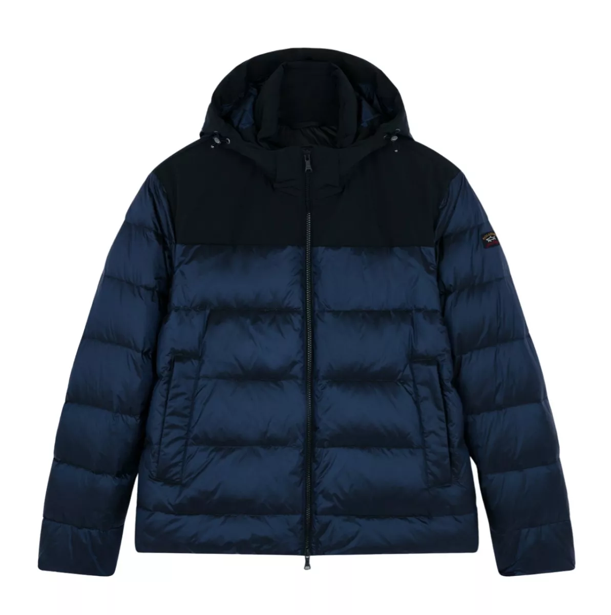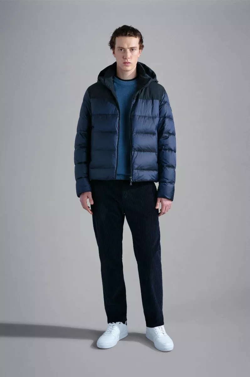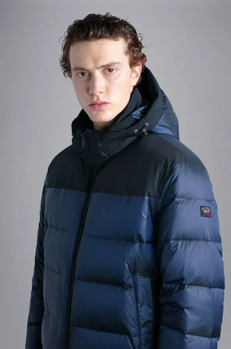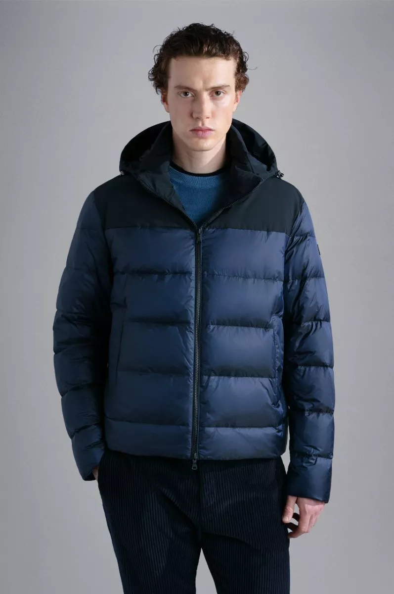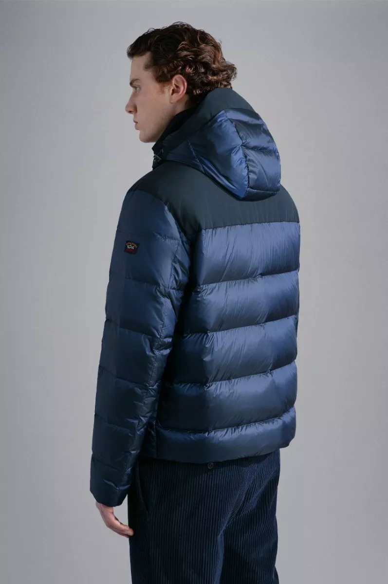 Стёганая куртка из лёгкой переливающейся ткани. Стандартный крой, двусторонняя молния по всей длине, по бокам врезные карманы на молнии. Внутренний карман с защитой E.M.W. от излучений телефона. Наполнитель из переработанного гусиного пуха Re-Goose