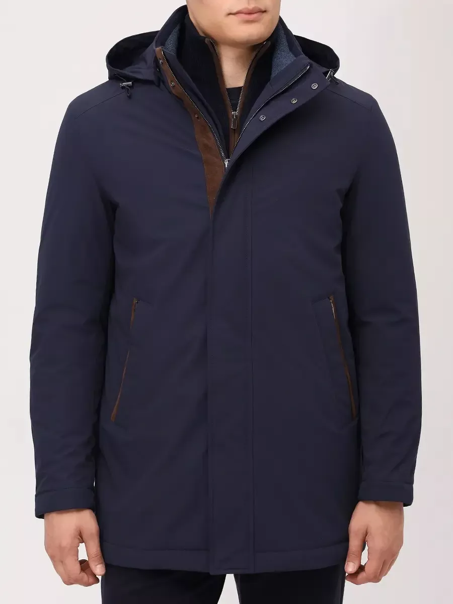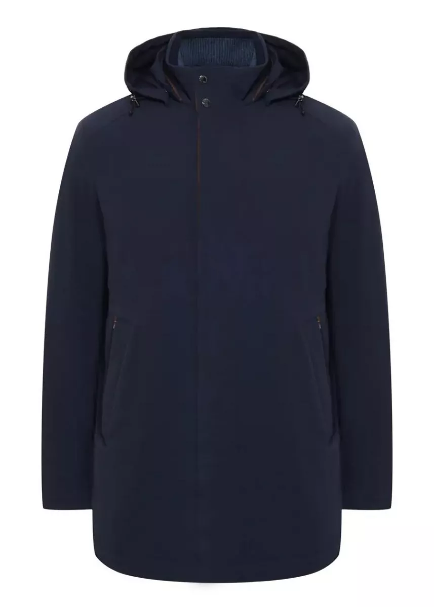 Пальто из влагостойкой ткани с утеплителем Primaloft. Typhoon 20000 — инновационная технология, запатентованная Paul&Shark, которая гарантирует высокие водоотталкивающие характеристики и защиту от ветра в любых погодных условиях благодаря ультратонкой мембране, которая не позволяет воде проникать в ткань. Модель прямого кроя с длинными рукавами, прорезными карманами на молниях, высоким воротником-стойкой, капюшоном на кулиске, застежкой на молнию с двумя пуллерами, ветрозащитной планкой на кнопках. Также предусмотрен карман с технологией E.M.W., которая защищает от электромагнитных волн и излучения