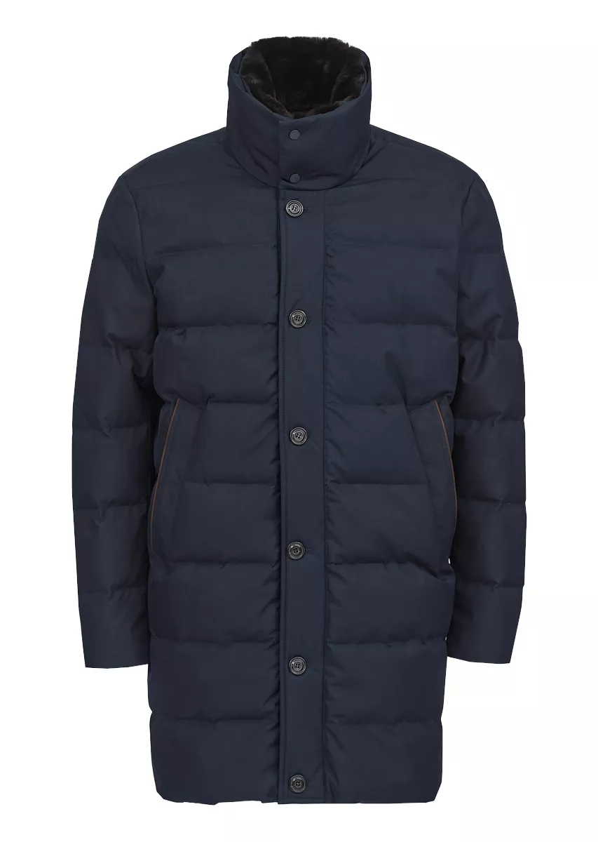 Удлиненный пуховик из саржи с технологией Typhoon. Теплое пальто с большим объемом гусиного пуха, который, тем не менее, практически невесом. Прочный непромокаемый материал Typhoon защищает от ветра и не пропускает влагу внутрь. Двусторонняя застежка-молния и планка на кнопках, внутренние карманы, в т.ч. для телефона